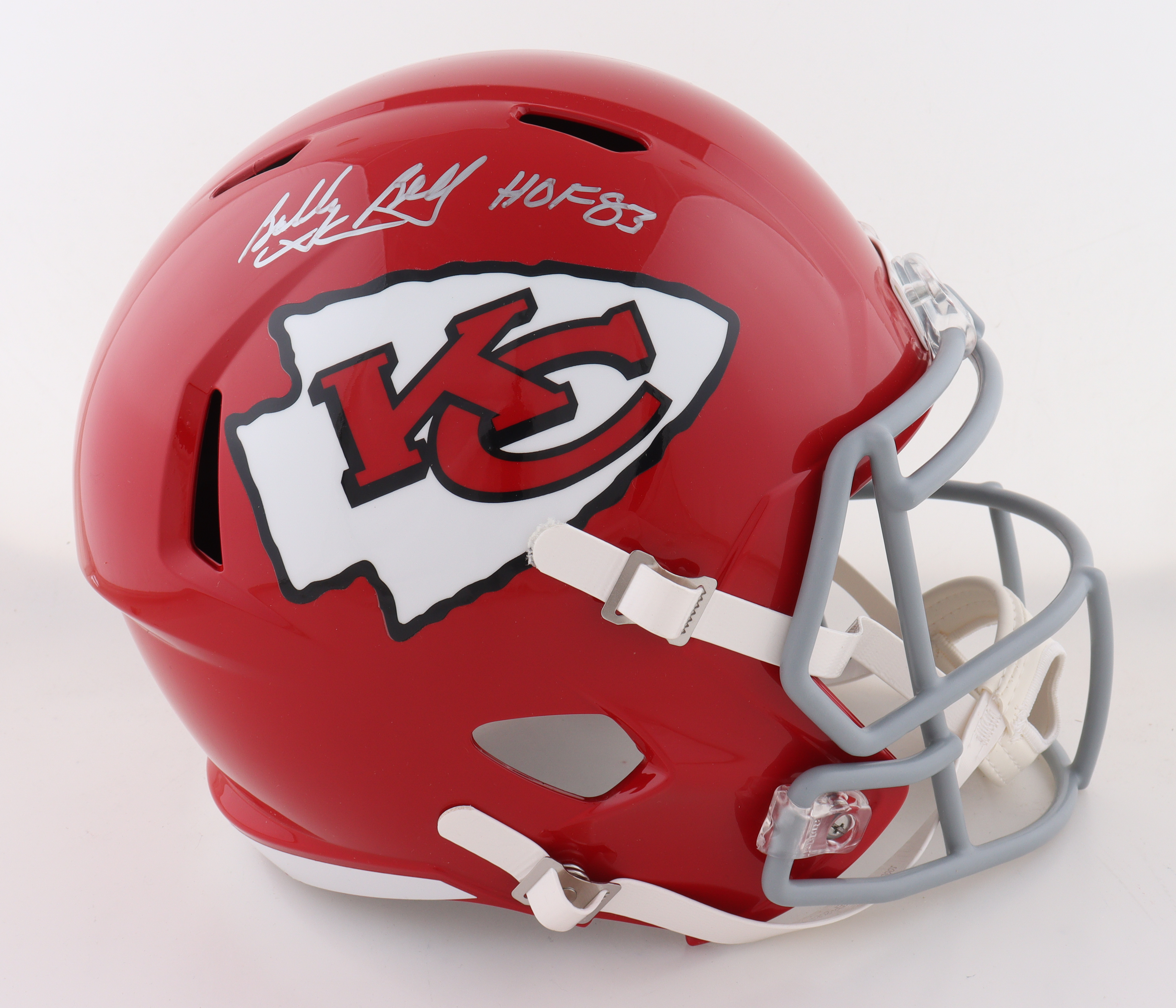 Riddell Kansas City Chiefs full-size replica Speed helmet has been hand-signed and inscribed by Bobby Bell (HOF).