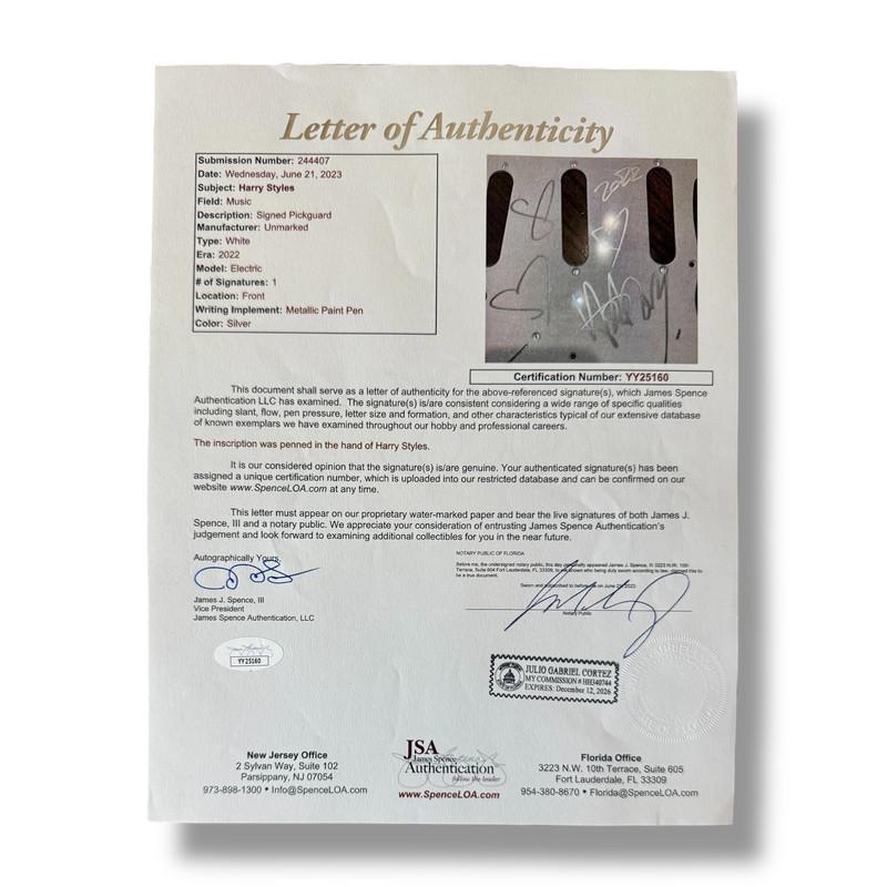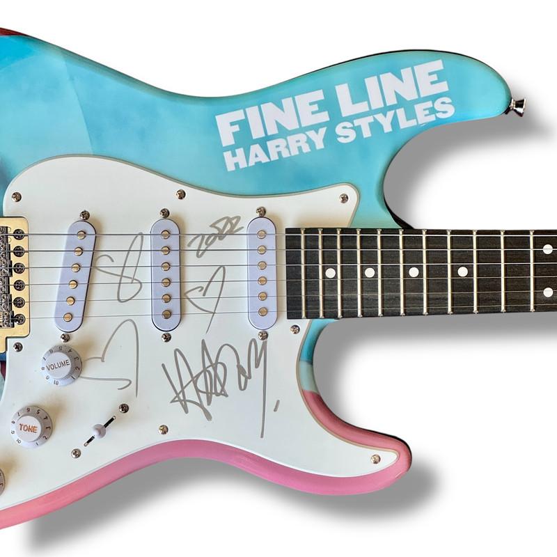 Custom Autograph Edition Stratocaster style electric guitar measures approximately 39" in length and has been hand-signed on the pickguard by Harry Styles.