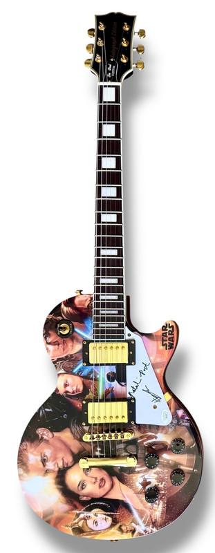 Custom Autograph Edition Les Paul style electric guitar measures approximately 39" in length and has been hand-signed on the pickguard by Natalie Portman (Padme Amidala) and Hayden Christensen (Anakin Skywalker/Darth Vader).