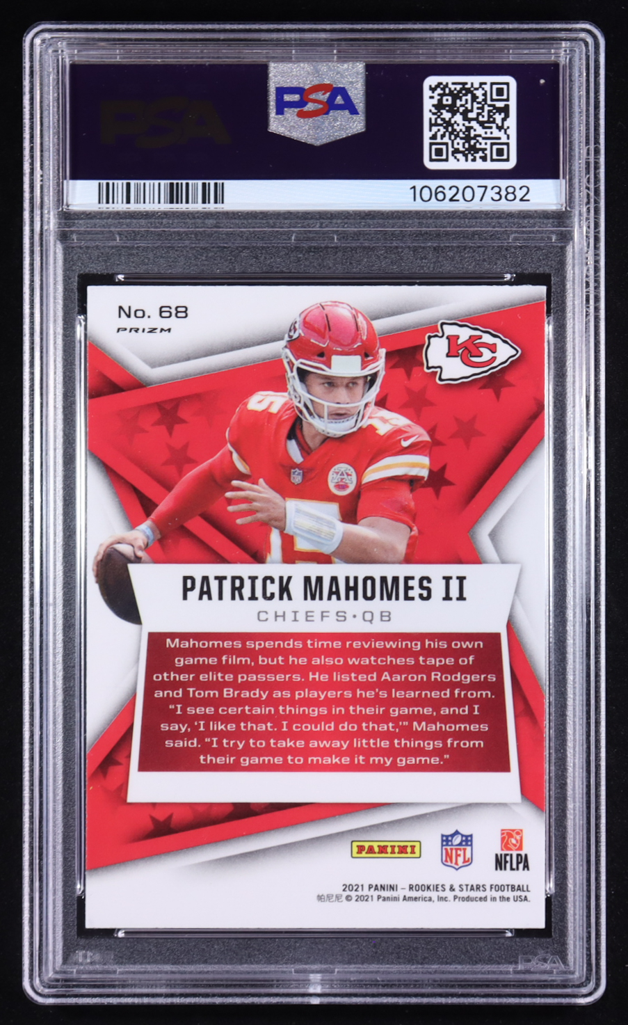 Patrick Mahomes II 2021 Rookies and Stars Red Pulsar Prizm #68 (PSA 10)