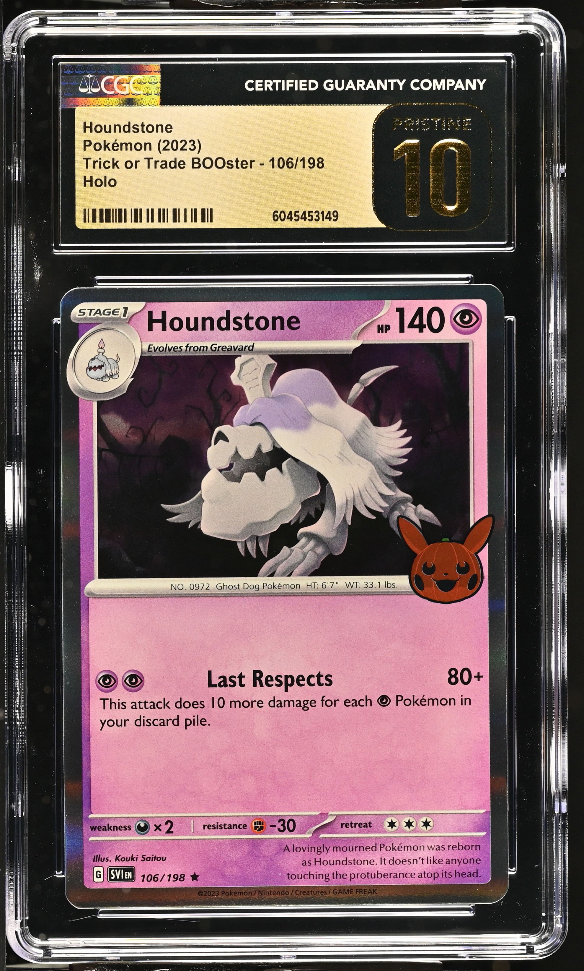 Houndstone 2023 Pokemon Trick Or Trade BOOster #106/198 (CGC PRISTINE 10 | Black Label)