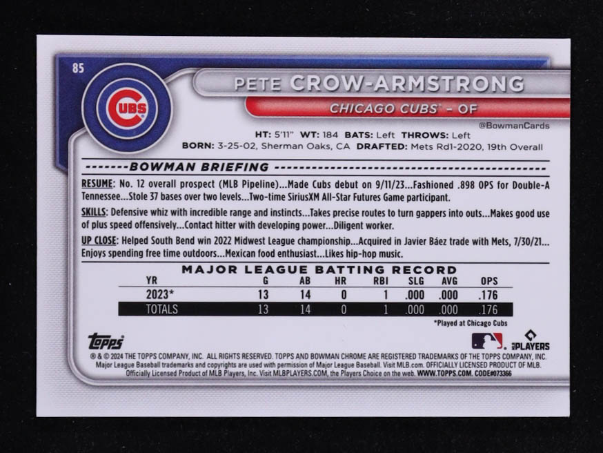 Pete Crow-Armstrong 2024 Bowman Chrome Bowman Mega Box #85 RC