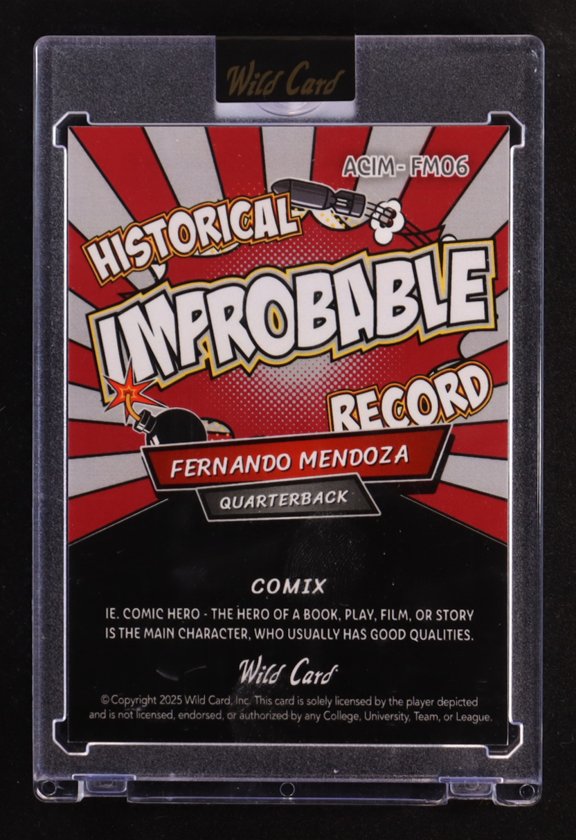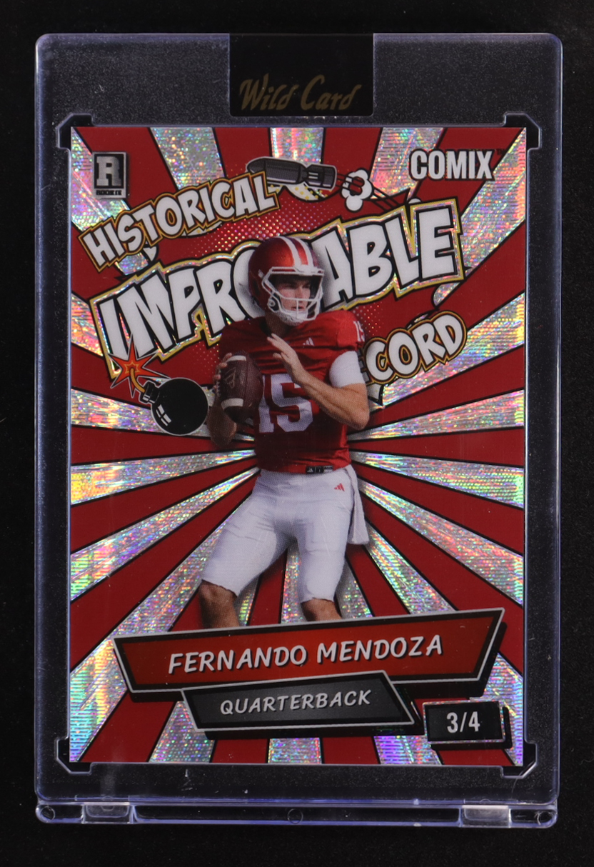 Fernando Mendoza 2025 Wild Card Alumination Comix Improbable Record Red and Silver Wave #ACBL-FM06 #3/4 RC