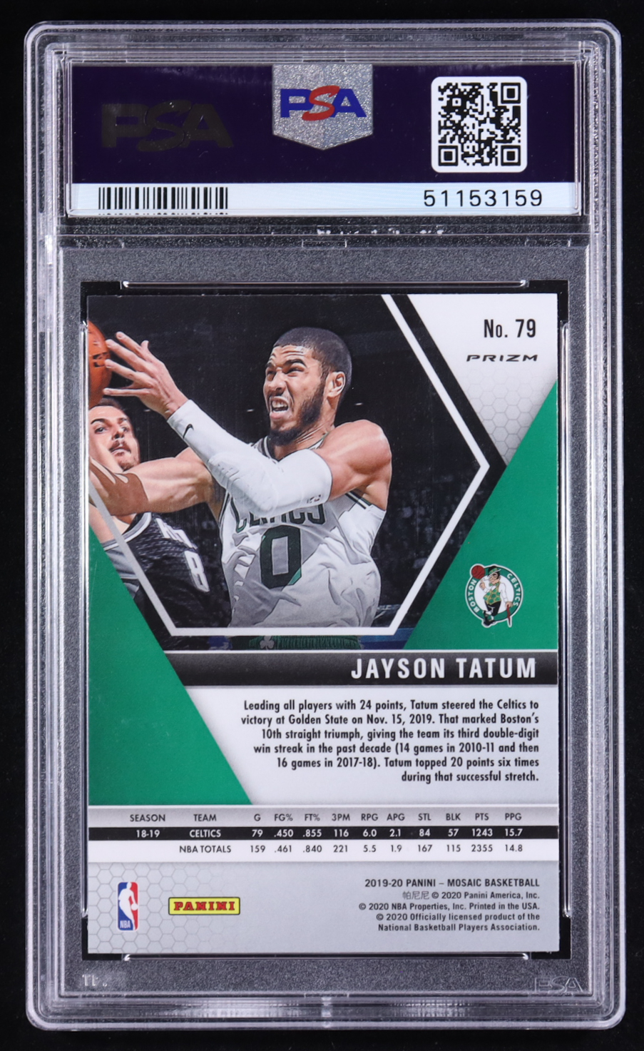 Jayson Tatum 2019-20 Panini Mosaic Mosaic Blue Reactive #79 (PSA 10)