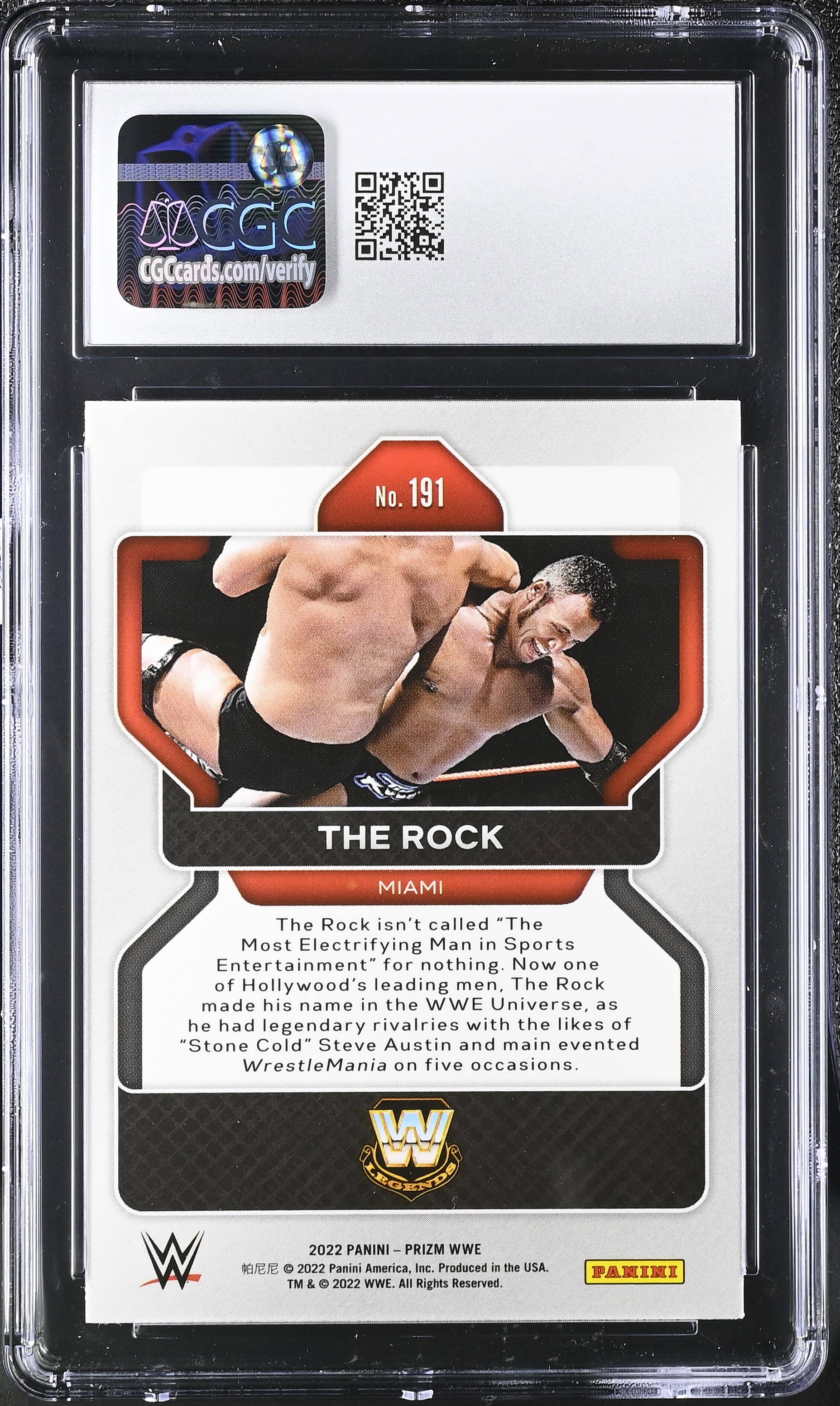 The Rock 2022 Panini Prizm WWE #191 (CGC 8)