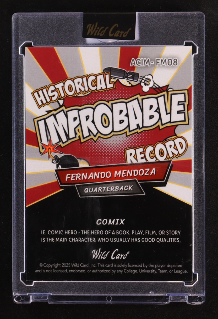 Fernando Mendoza 2025 Wild Card Alumination Comix Improbable Record White and Red Silver Foil #ACBL-FM011 #2/4 RC