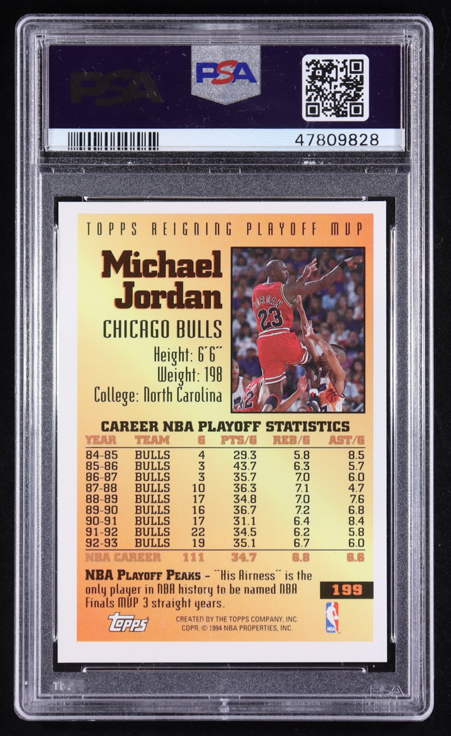 Michael Jordan 1993-94 Topps #199 FPM (PSA 9)