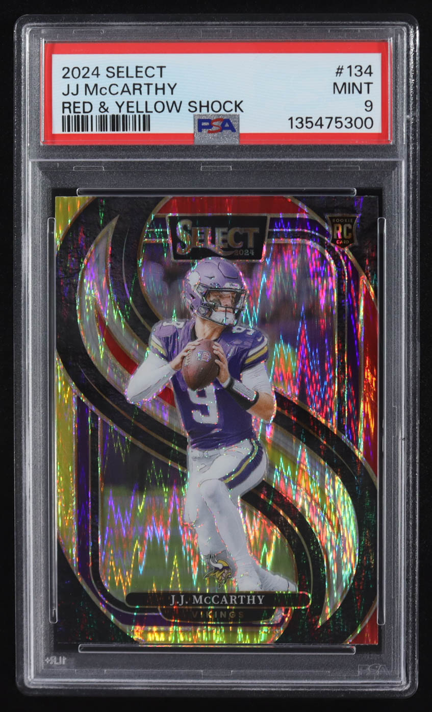 JJ McCarthy 2024 Select Prizm Red and Yellow Shock #134 RC (PSA 9)