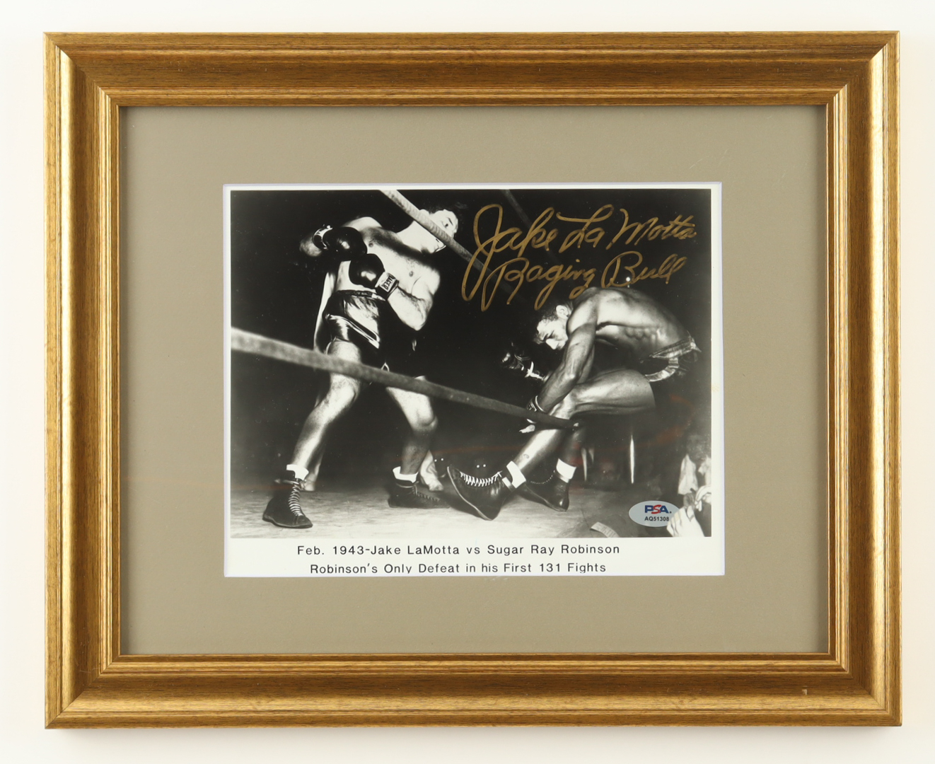 Jake LaMotta Signed Custom Framed Photo Display Inscribed "Raging Bull" (PSA)
