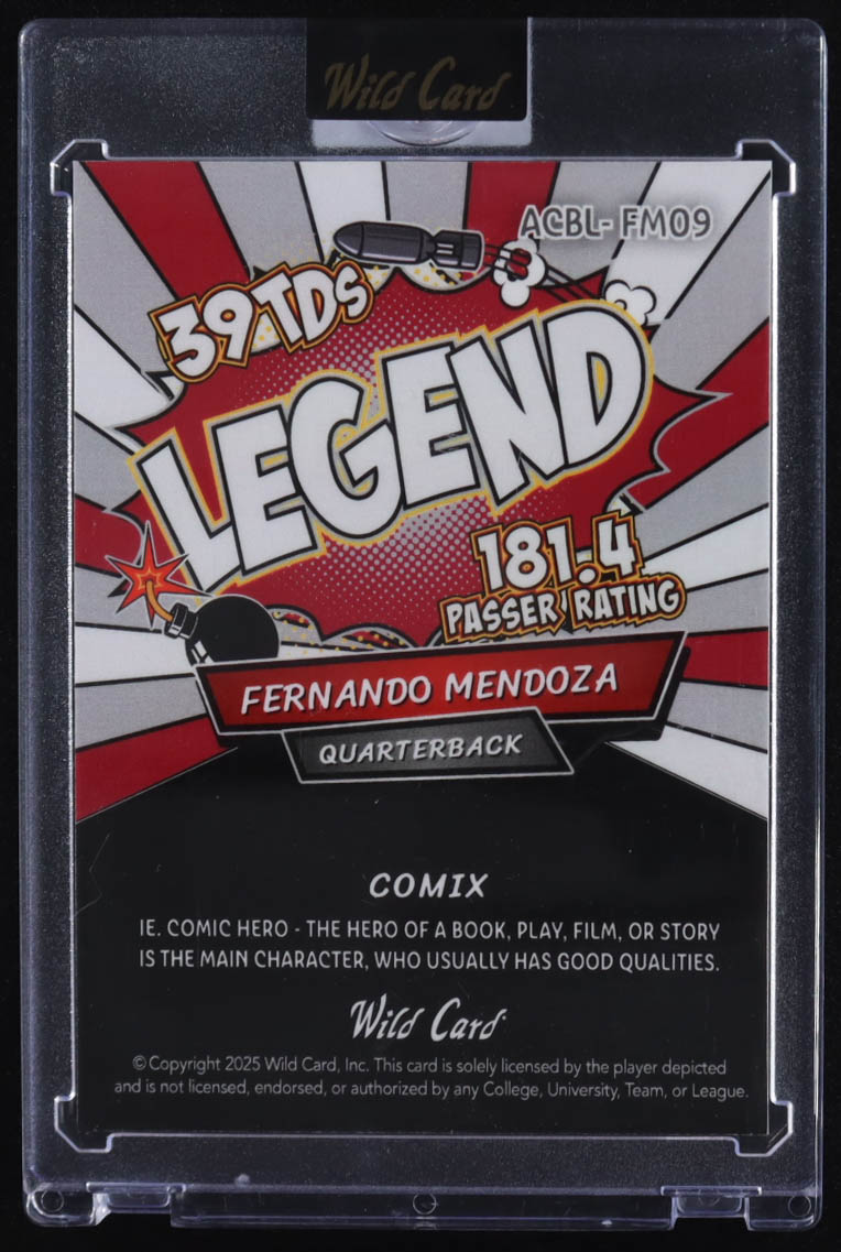 Fernando Mendoza 2025 Wild Card Comix 39 TDs Legend Red and White Mojo #ACBLFM09 RC #1/3