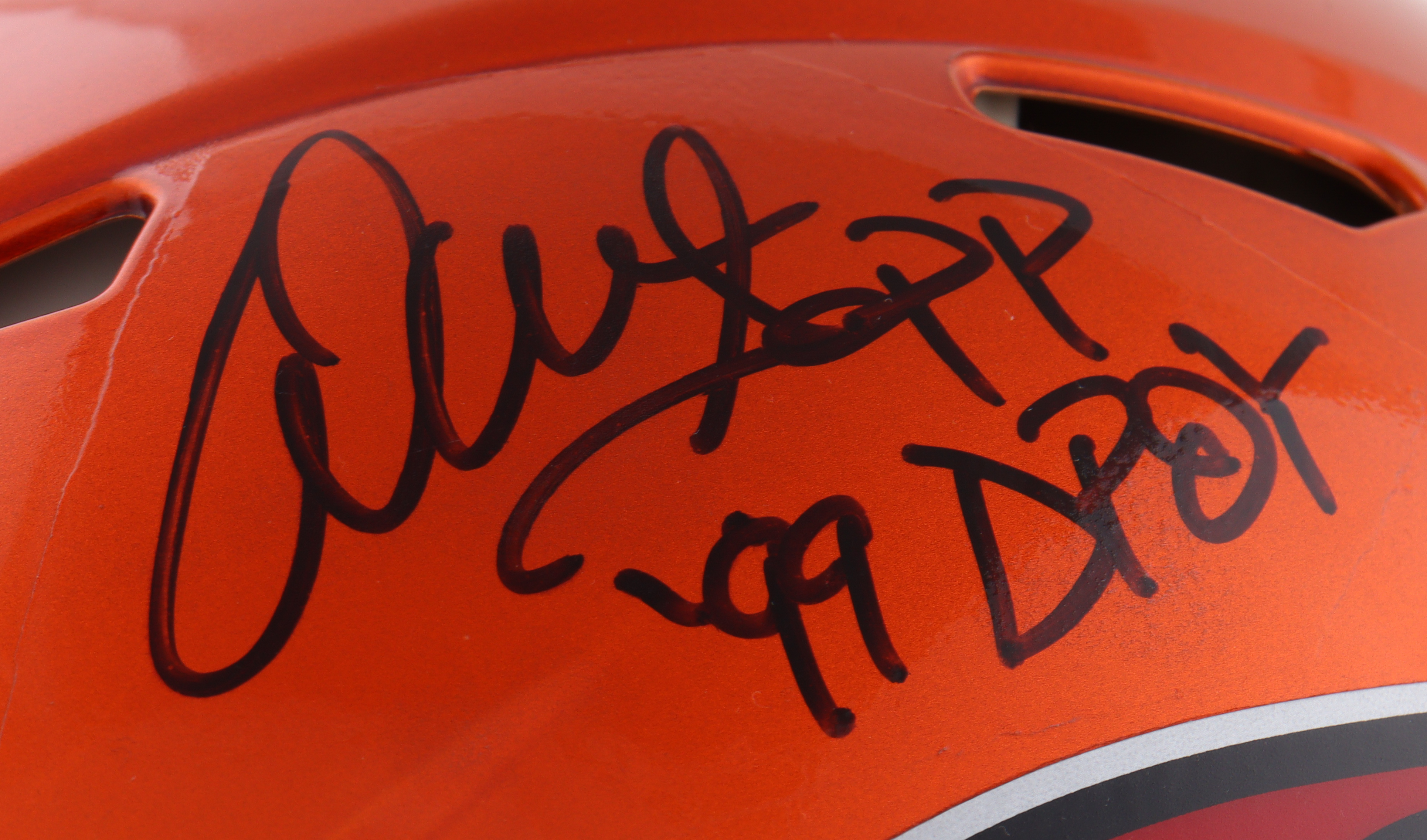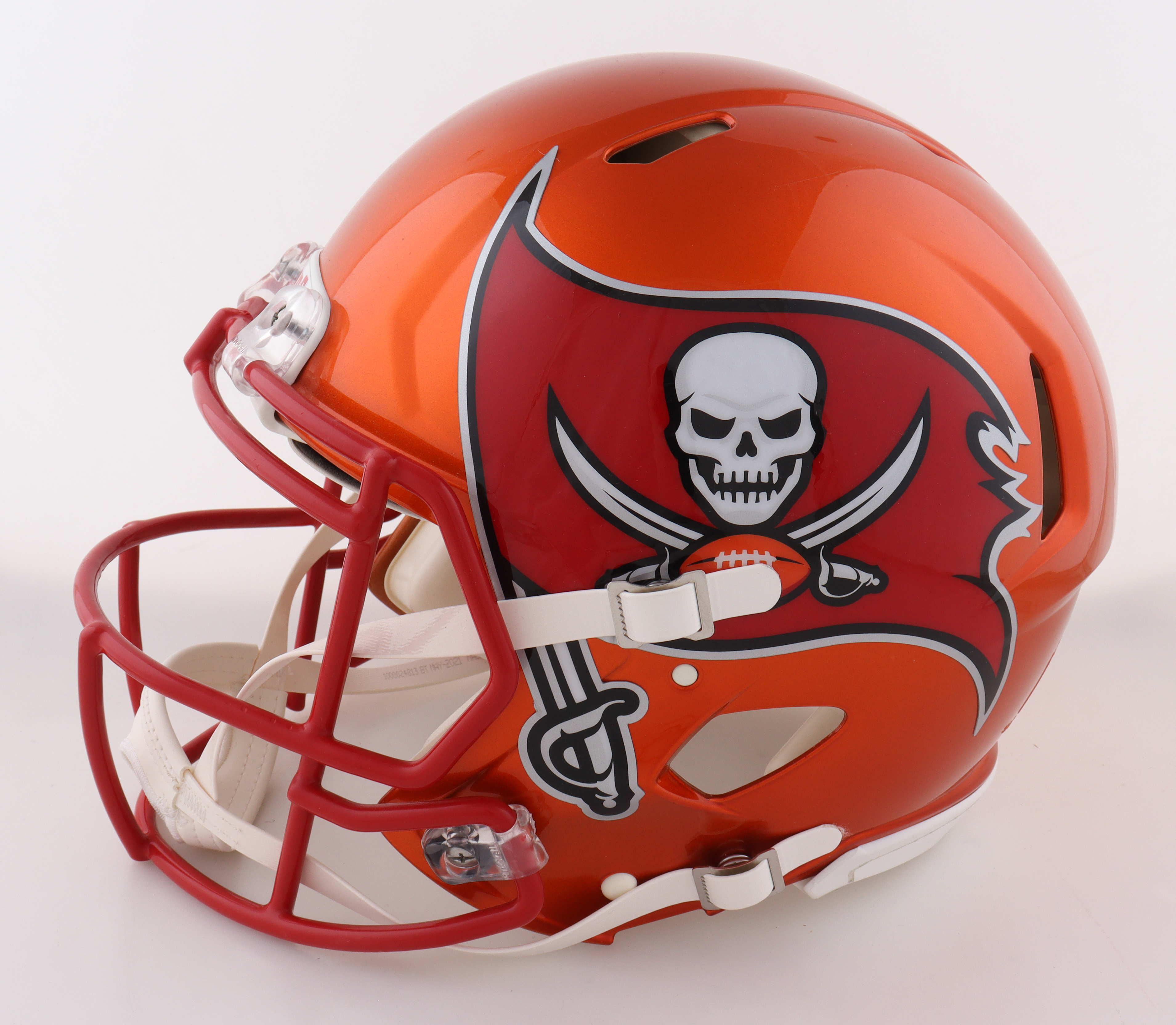 Riddell Tampa Bay Buccaneers full-size authentic, on-field Flash Alternate Speed helmet. Hand-signed and inscribed by Warren Sapp (HOF).