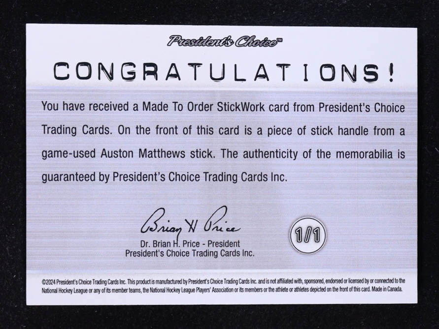 Auston Matthews 2024 President's Choice Made To Order Stickwork Tape Relic 1/1