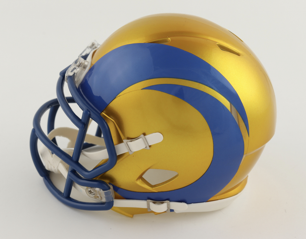 Riddell Los Angeles Rams Flash Alternate Speed mini helmet. Hand-signed by Cam Akers.
