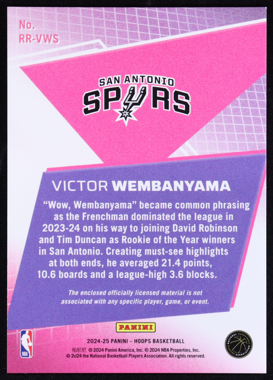 Victor Wembanyama 2024-25 Hoops Rookie Remembrance Memorabilia #13