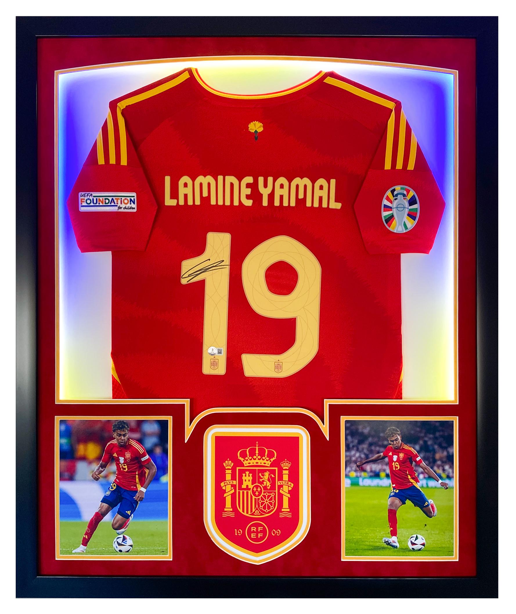 Lamine Yamal Signed Spain National Team Custom Framed LED Jersey Display (Beckett)