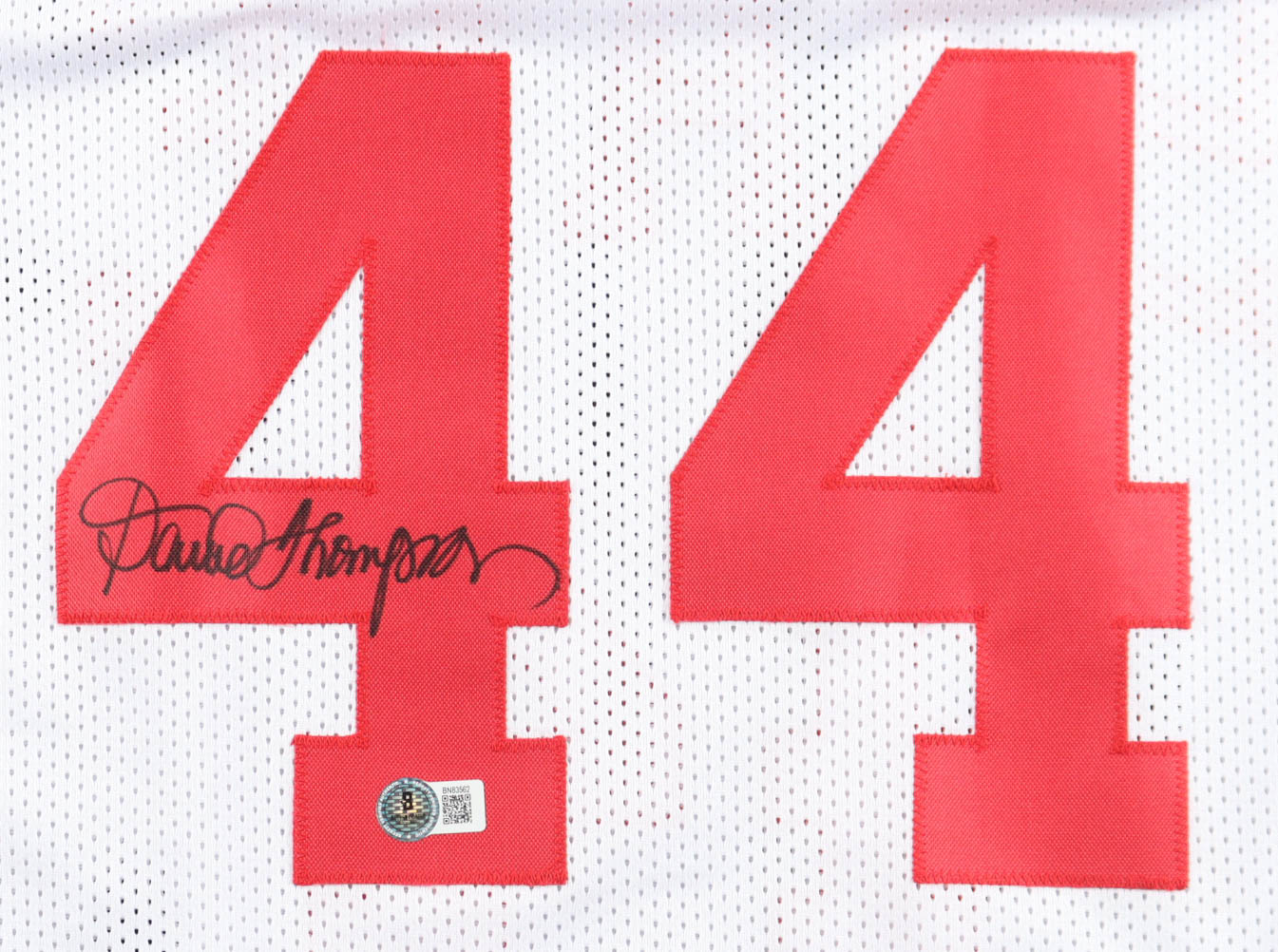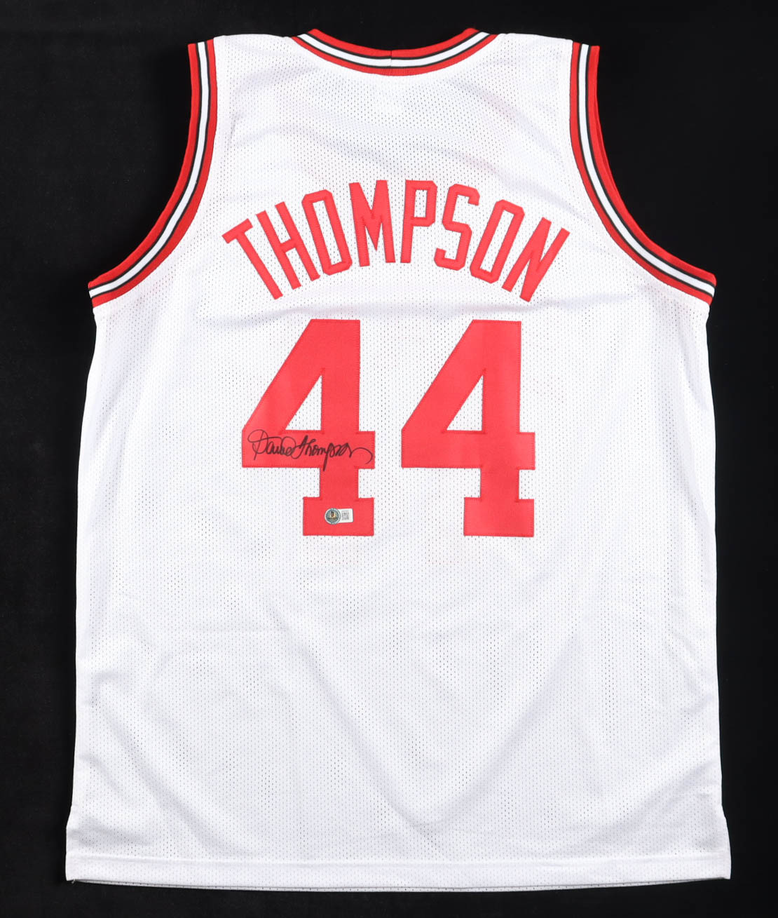 Custom jersey with everything sewn on, size XL. Hand-signed by David Thompson (HOF).