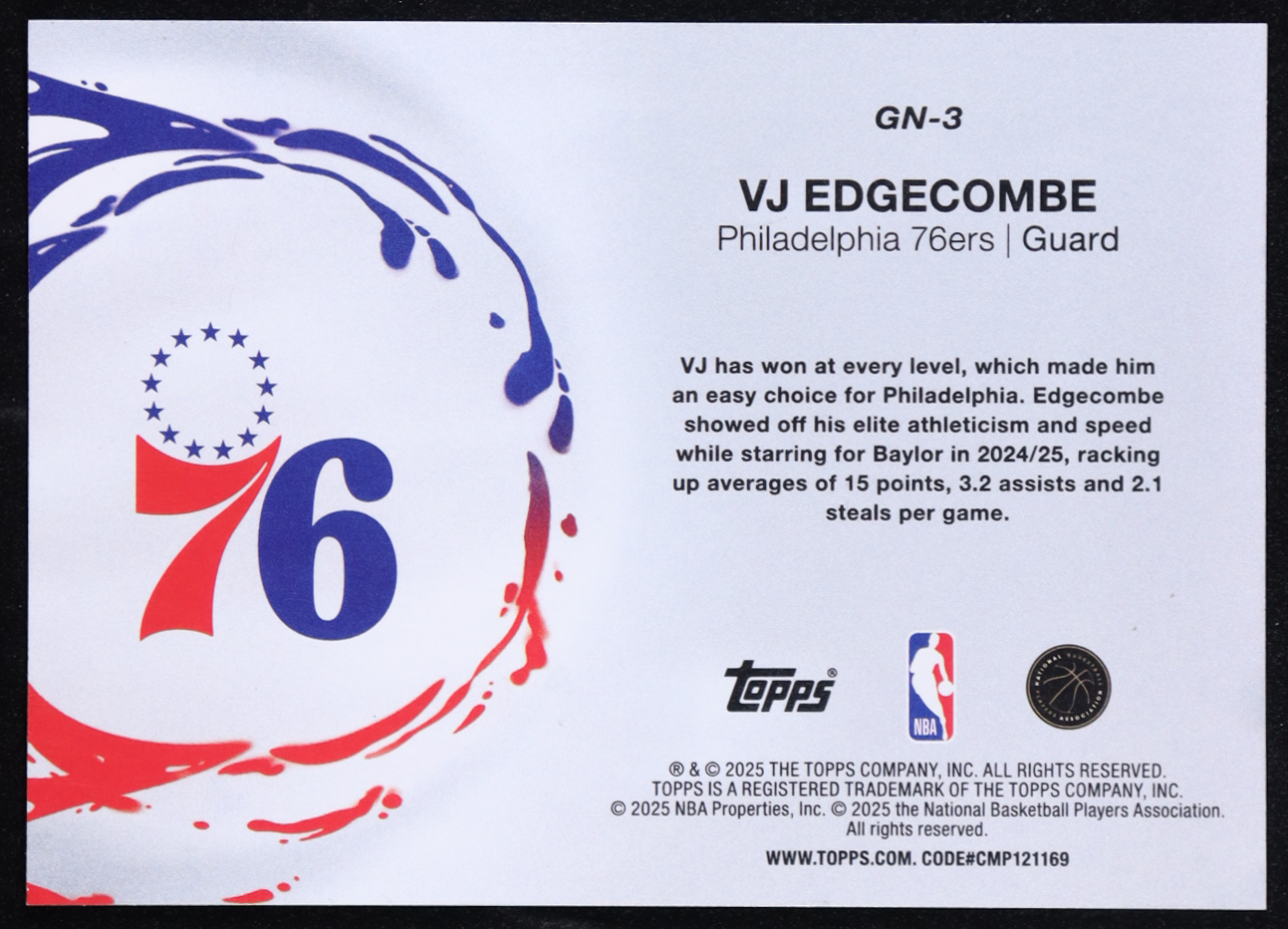VJ Edgecombe 2025-26 Topps Generation Now Holo Foil #GN3 RC