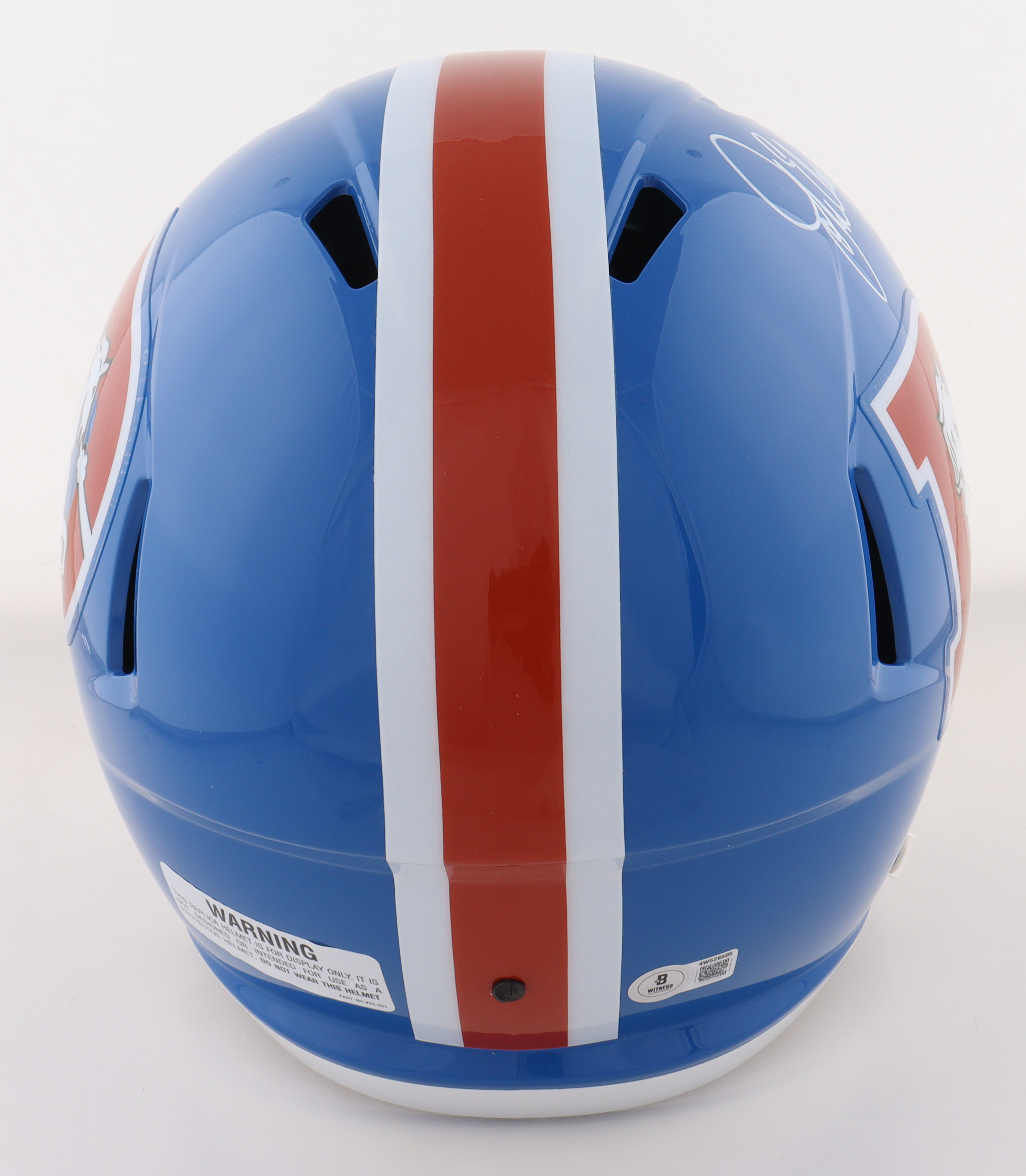 Riddell Denver Broncos Full-Size Throwback Alternate Speed Replica Helmet. Hand-signed by John Elway (HOF).