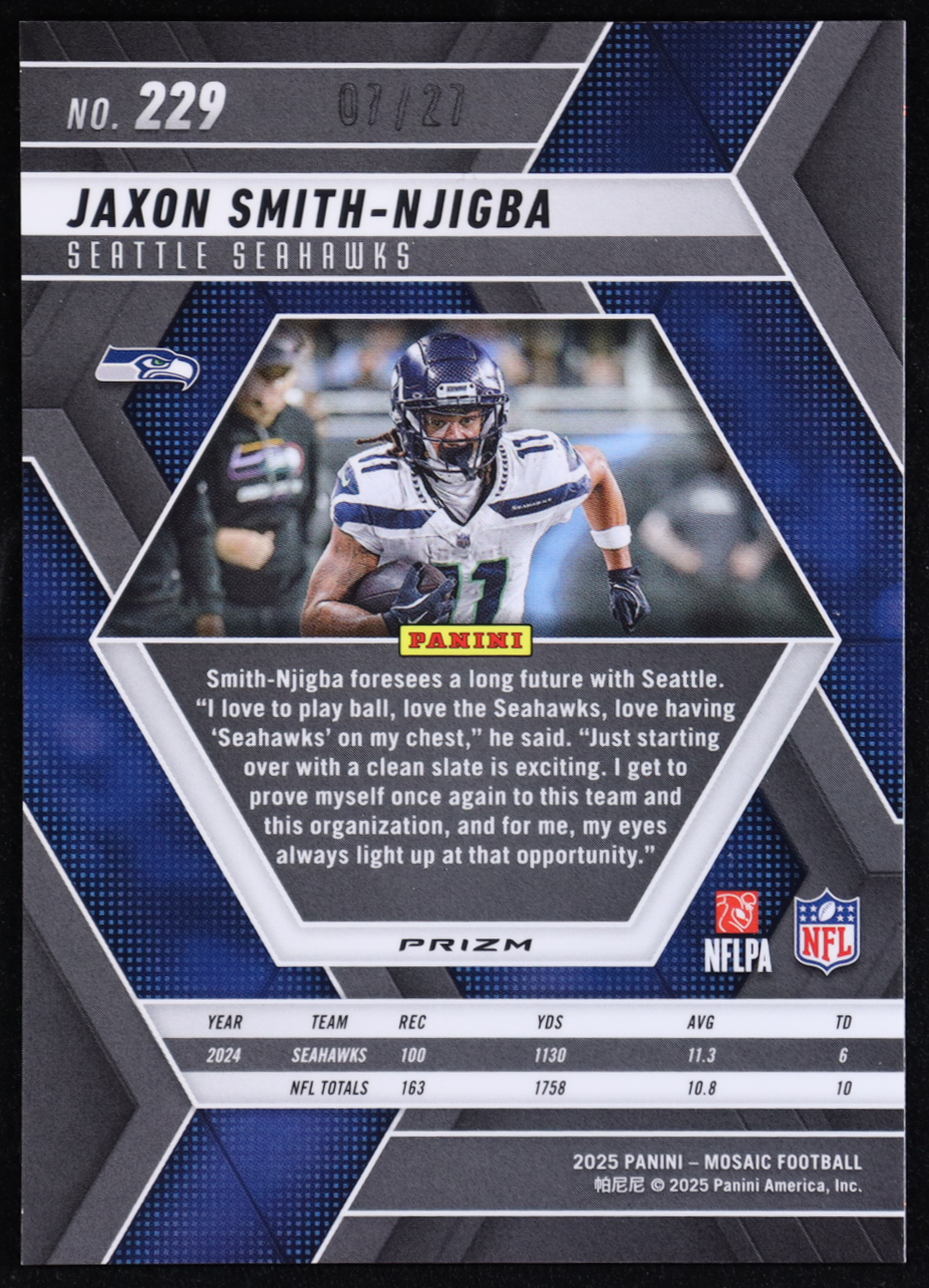 Jaxon Smith-Njigba 2025 Panini Mosaic Mosaic Red Wave #229 #07/27