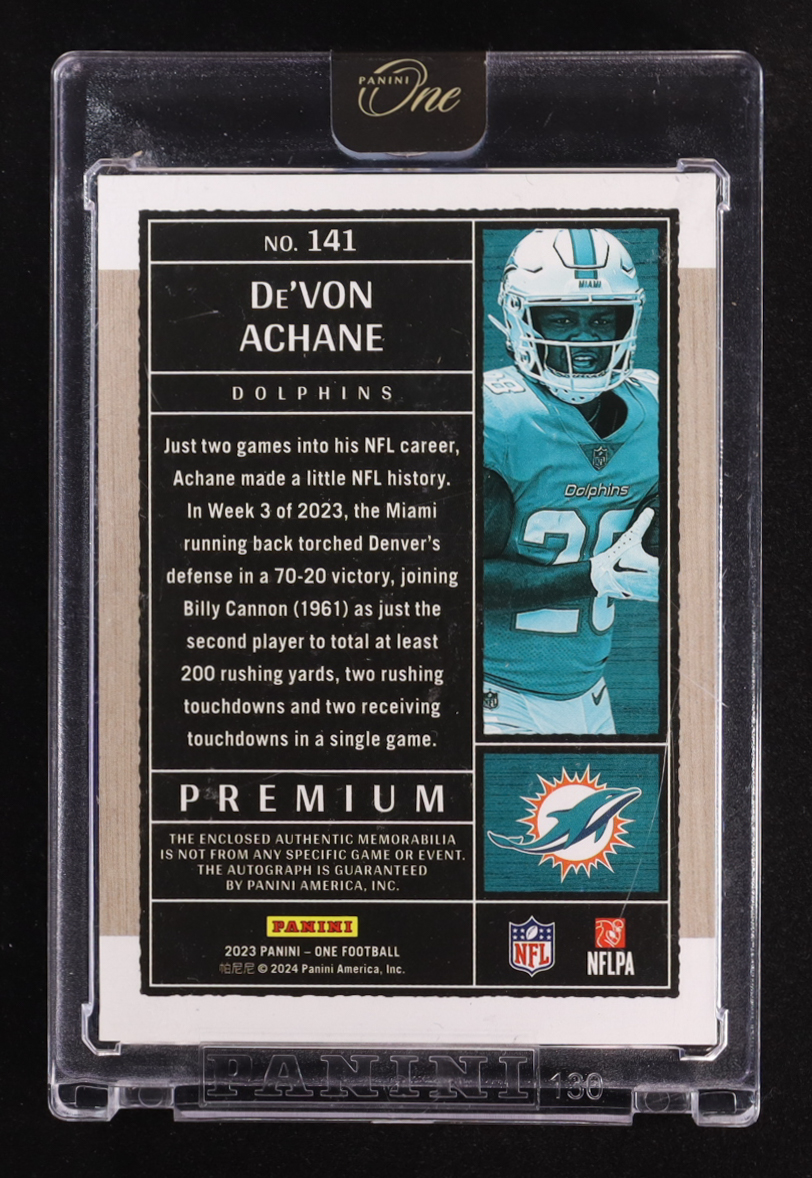 De’Von Achane 2023 Panini One Red Autographs #141 #07/15 RC