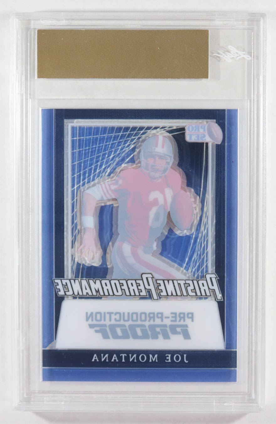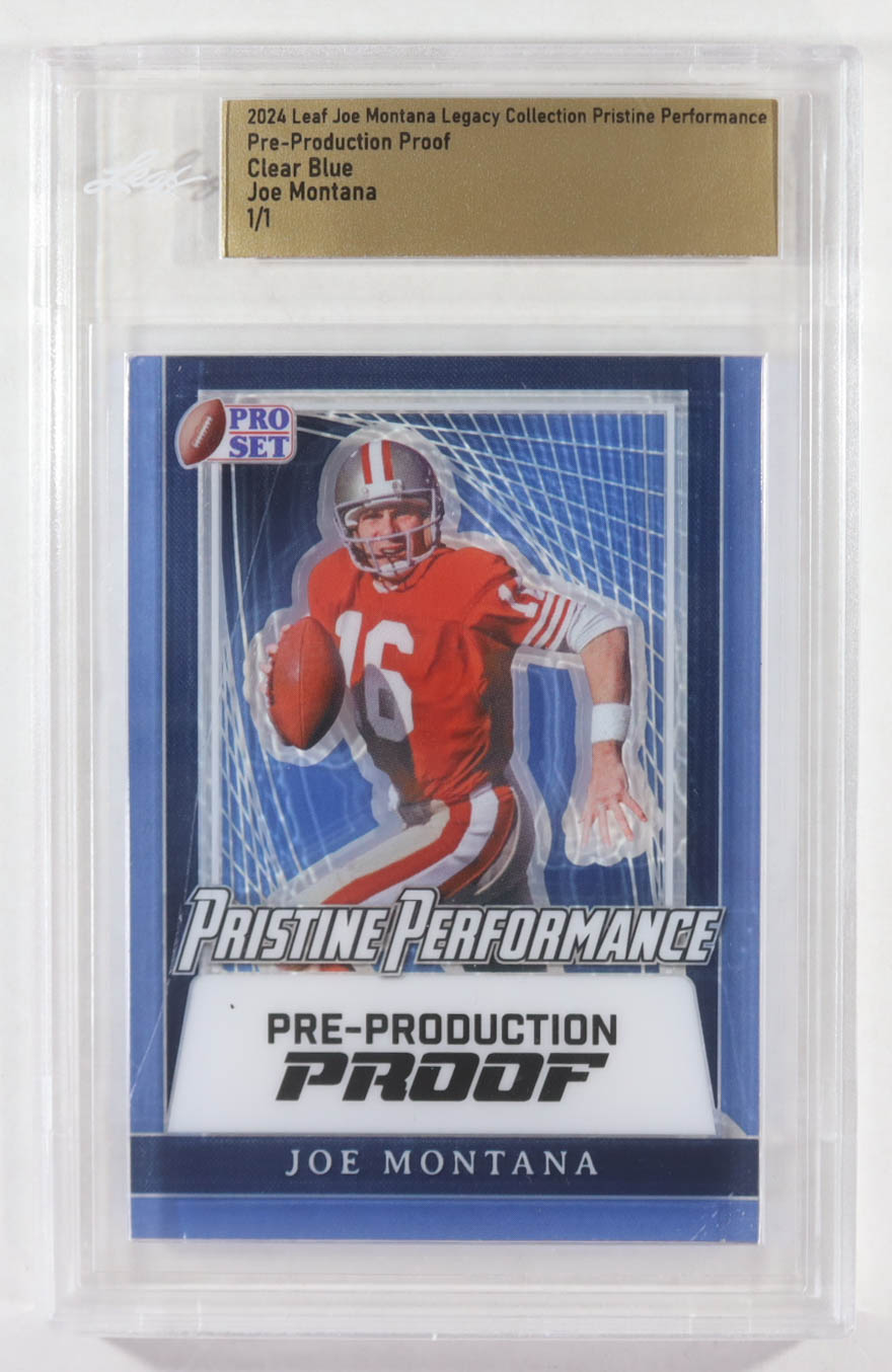 Joe Montana 2024 Leaf Joe Montana Legacy Pristine Performance Pre-Production Proof Clear Blue #NNO #1/1 (Leaf)