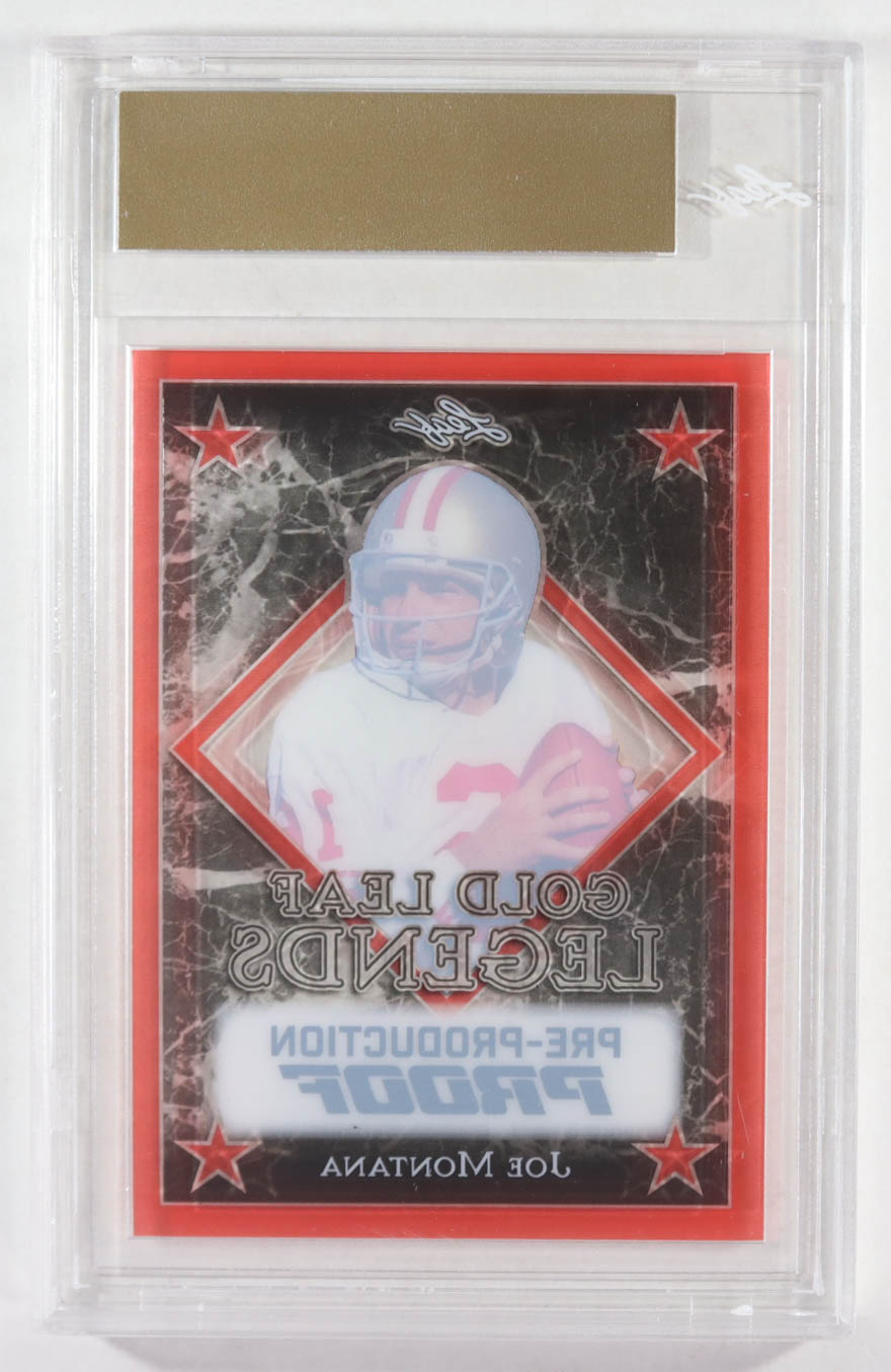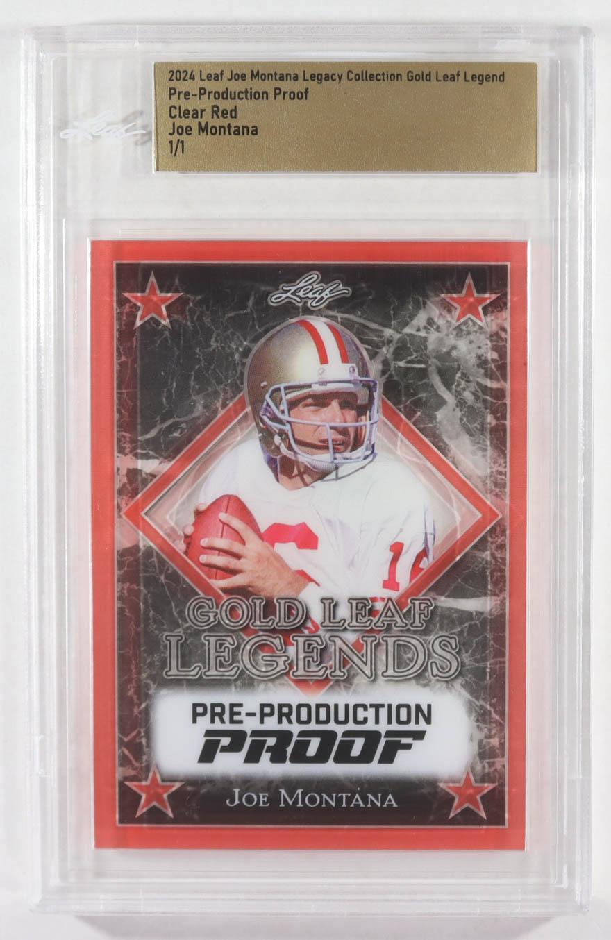 Joe Montana 2024 Leaf Joe Montana Legacy Gold Leaf Legend Pre-Production Proof Clear Red #NNO #1/1 (Leaf)