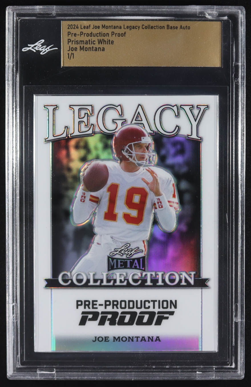 Joe Montana 2024 Leaf Joe Montana Legacy Base Auto Pre-Production Proof Prismatic White #NNO #1/1 (Leaf)