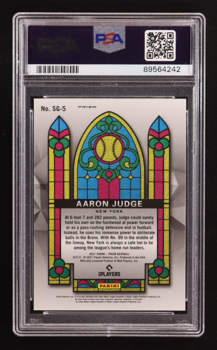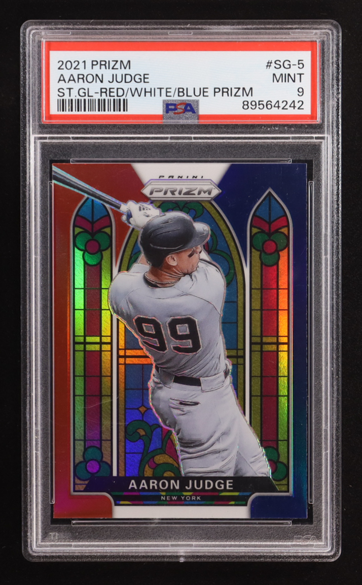 Aaron Judge 2021 Panini Prizm Stained Glass Prizms Red White and Blue #5 (PSA 9)
