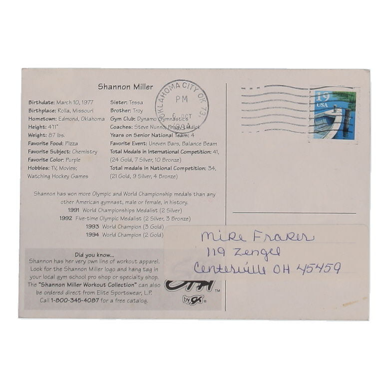 Postcard has been hand-signed by Shannon Miller. Please see photos for more details regarding the item.