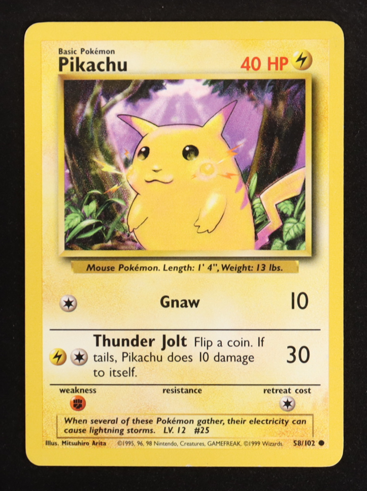 Pikachu 1999 Pokemon Base Unlimited COR C (Yellow Cheeks) #58
