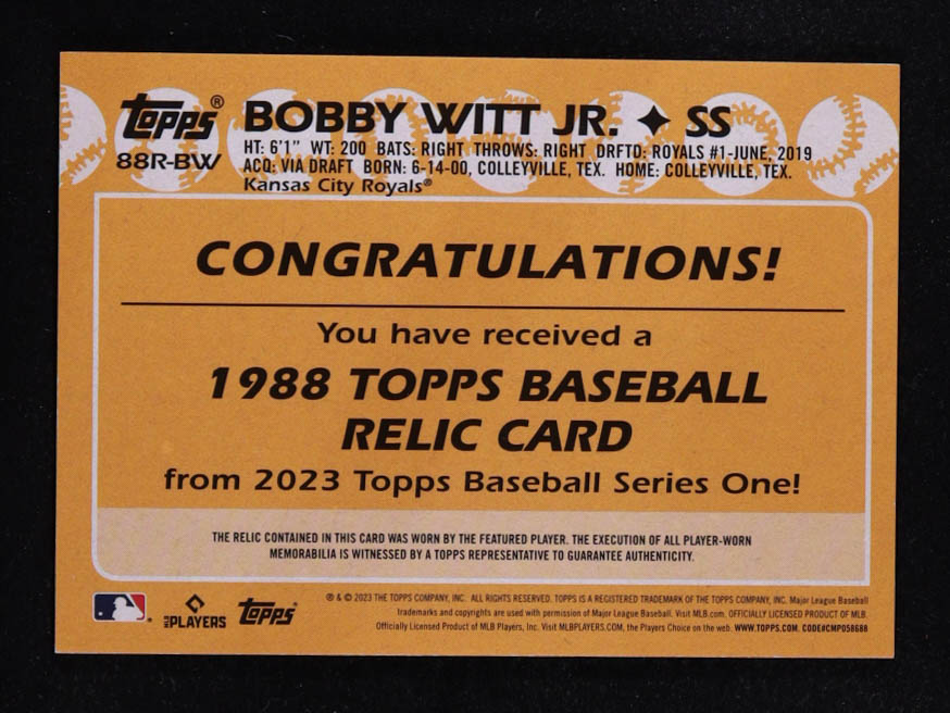 Bobby Witt Jr. 2023 Topps '88 Topps Relics #88RBW