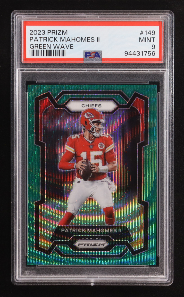 Patrick Mahomes II 2023 Panini Prizm Prizms Green Wave #149 (PSA 9)