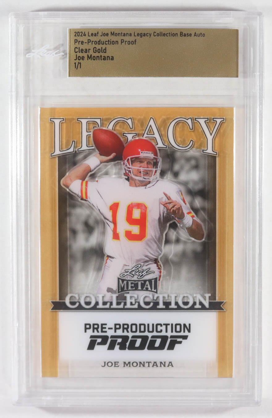 Joe Montana 2024 Leaf Joe Montana Legacy Base Auto Pre-Production Proof Clear Gold #NNO #1/1 (Leaf)