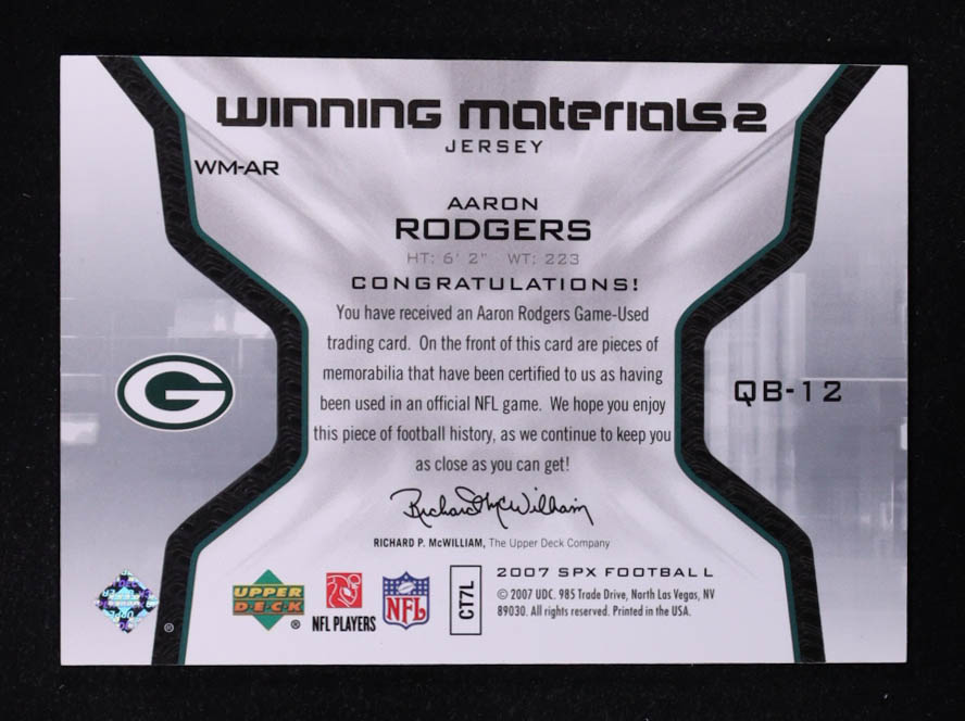 Aaron Rodgers 2007 SPx Winning Materials Jersey Number Dual #WMAR