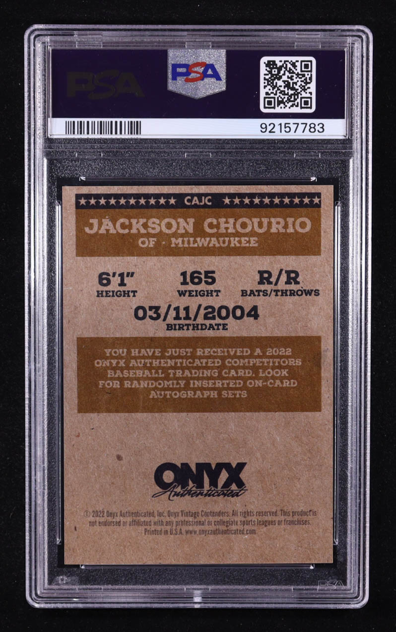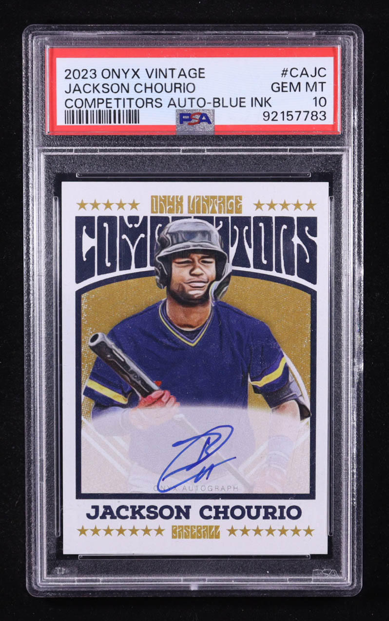 Jackson Chourio 2023 Onyx Vintage Competitors Autographs Blue Ink #CAJC RC (PSA 10)