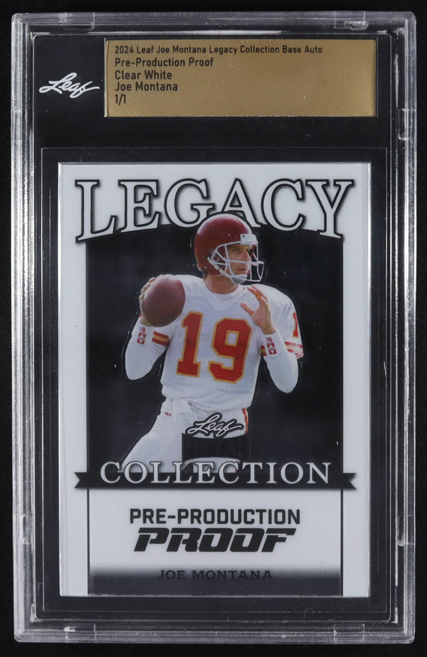 Joe Montana 2024 Leaf Joe Montana Legacy Base Auto Pre-Production Proof Clear White #NNO #1/1 (Leaf)
