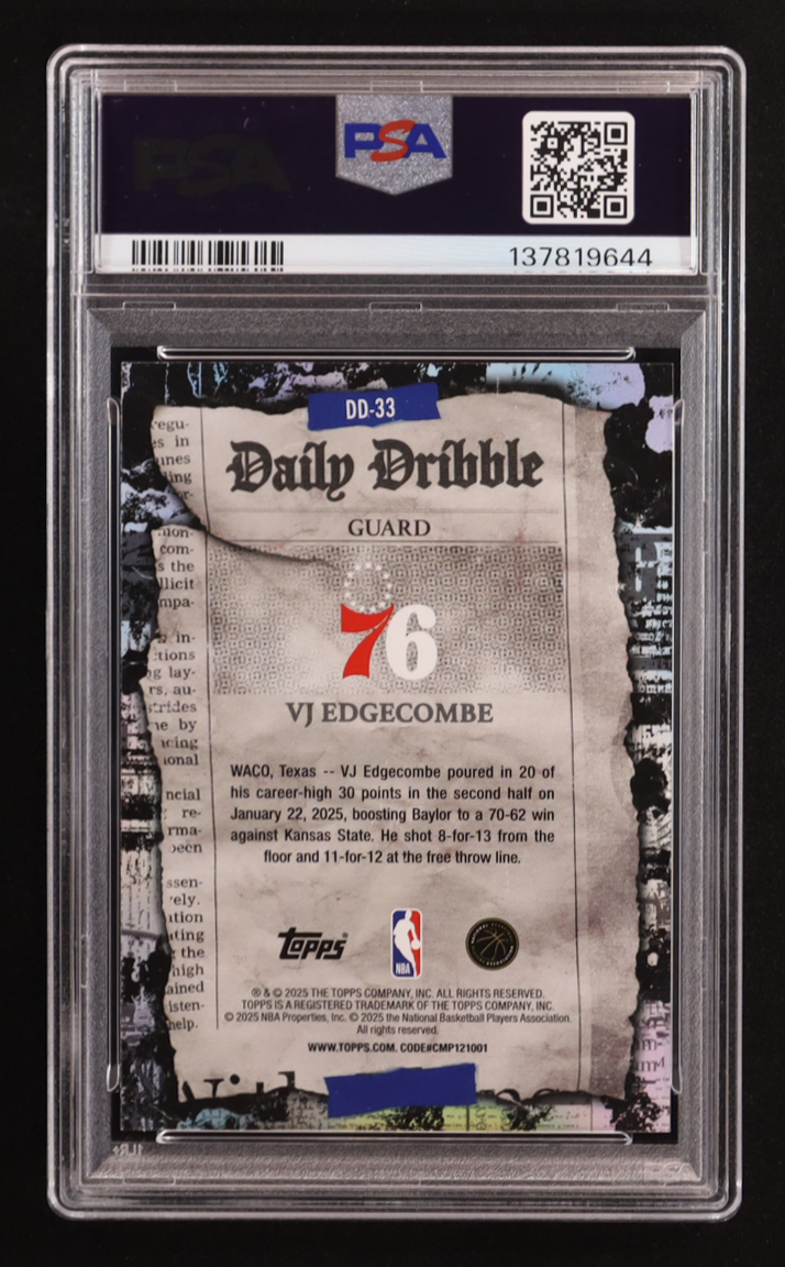 VJ Edgecombe 2025-26 Topps The Daily Dribble #DD33 RC (PSA 9)