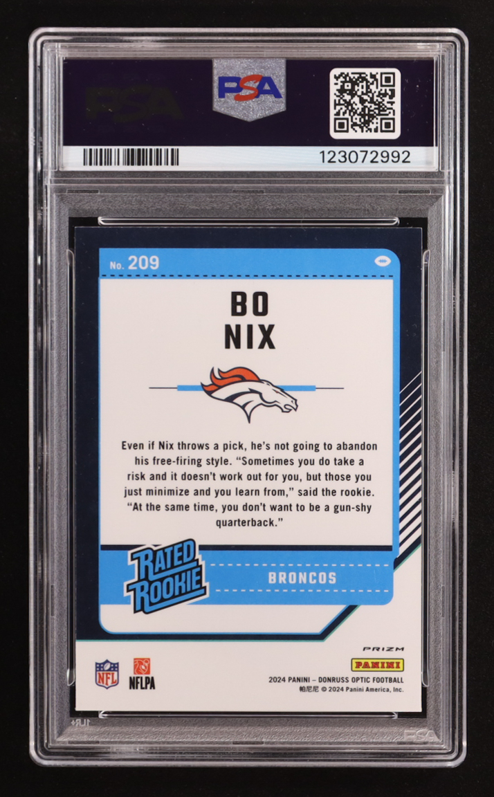 Bo Nix 2024 Donruss Optic Green Hyper #209 RR RC (PSA 9)