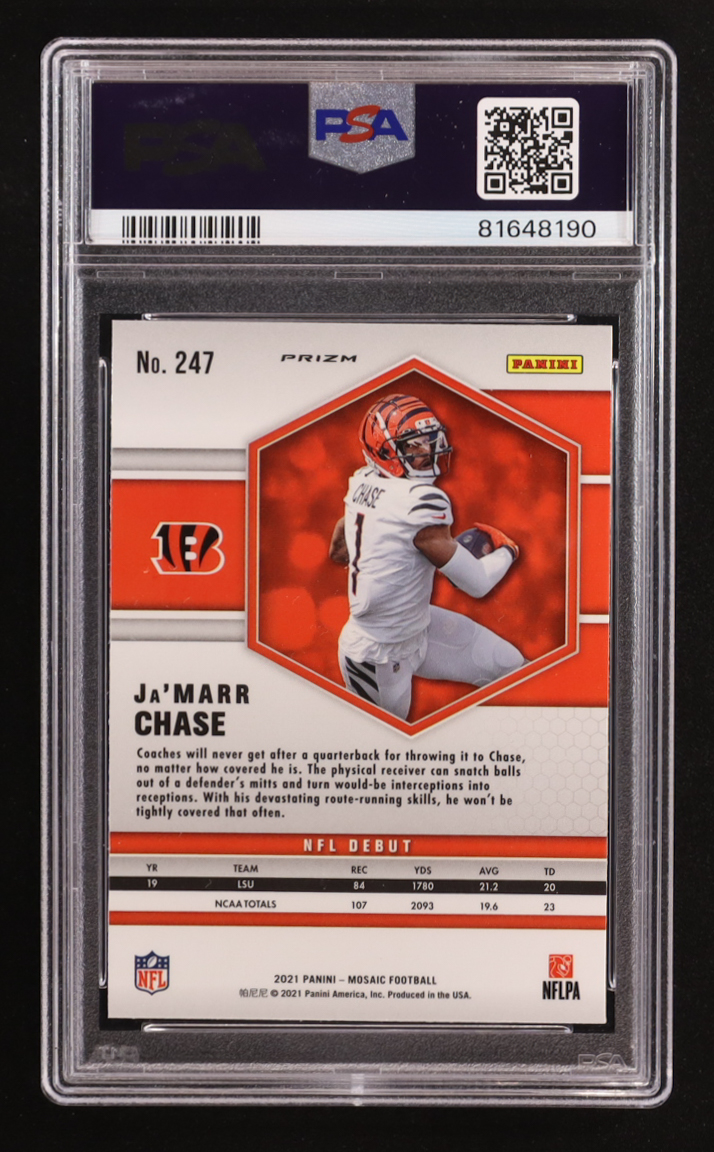 Ja'Marr Chase 2021 Panini Mosaic Mosaic Reactive Blue #247 DEB RC (PSA 10)