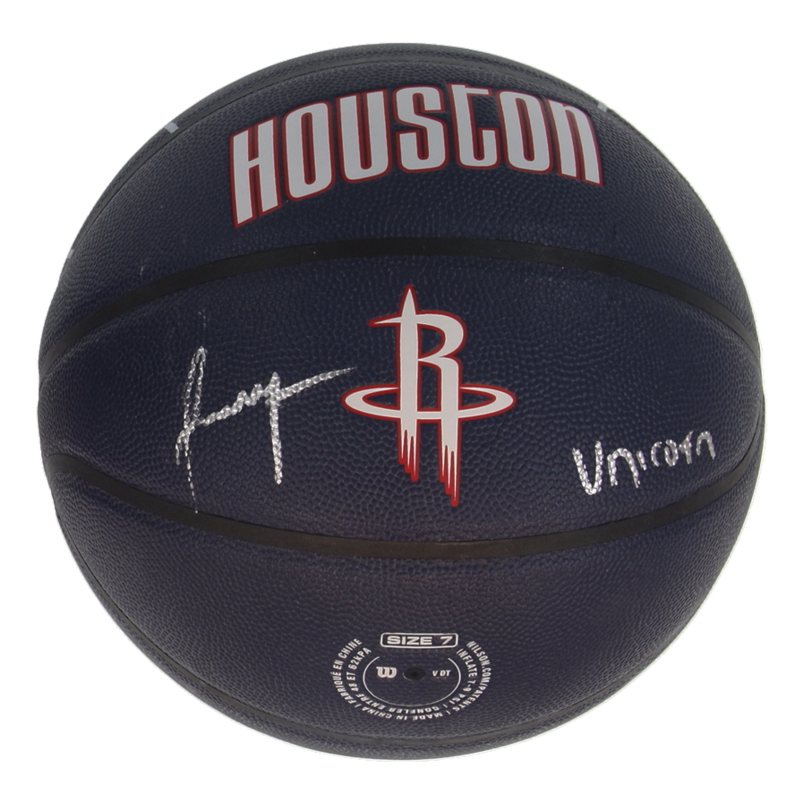 Wilson City Edition Houston Rockets Logo NBA Basketball. Hand-signed and inscribed by Jalen Green. Please note, there are stains throughout the basketball.