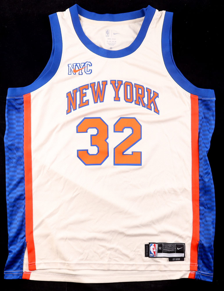 Nike authentic jersey with everything pressed on, size 52. Hand-signed by Karl-Anthony Towns (New York Knicks).
