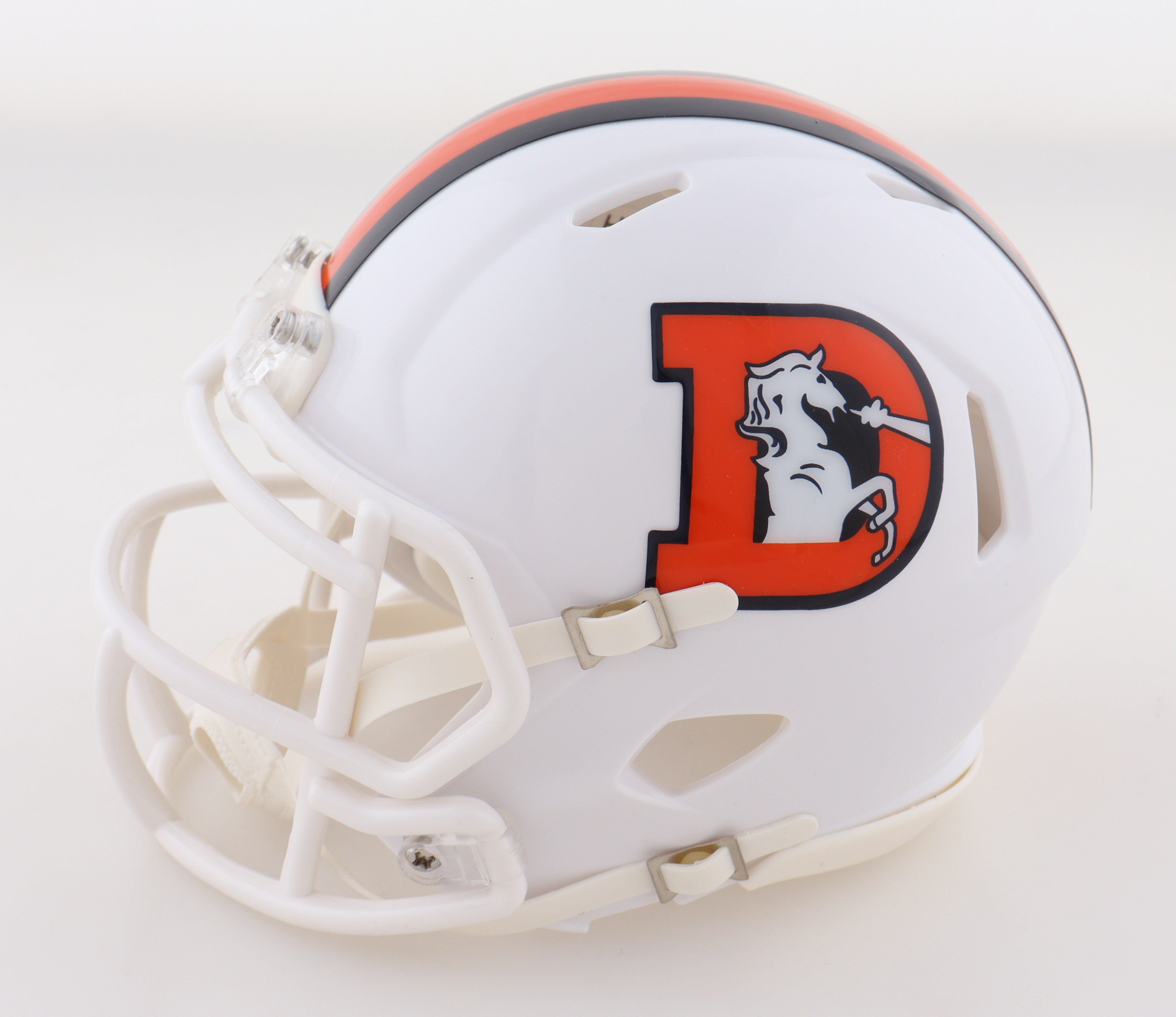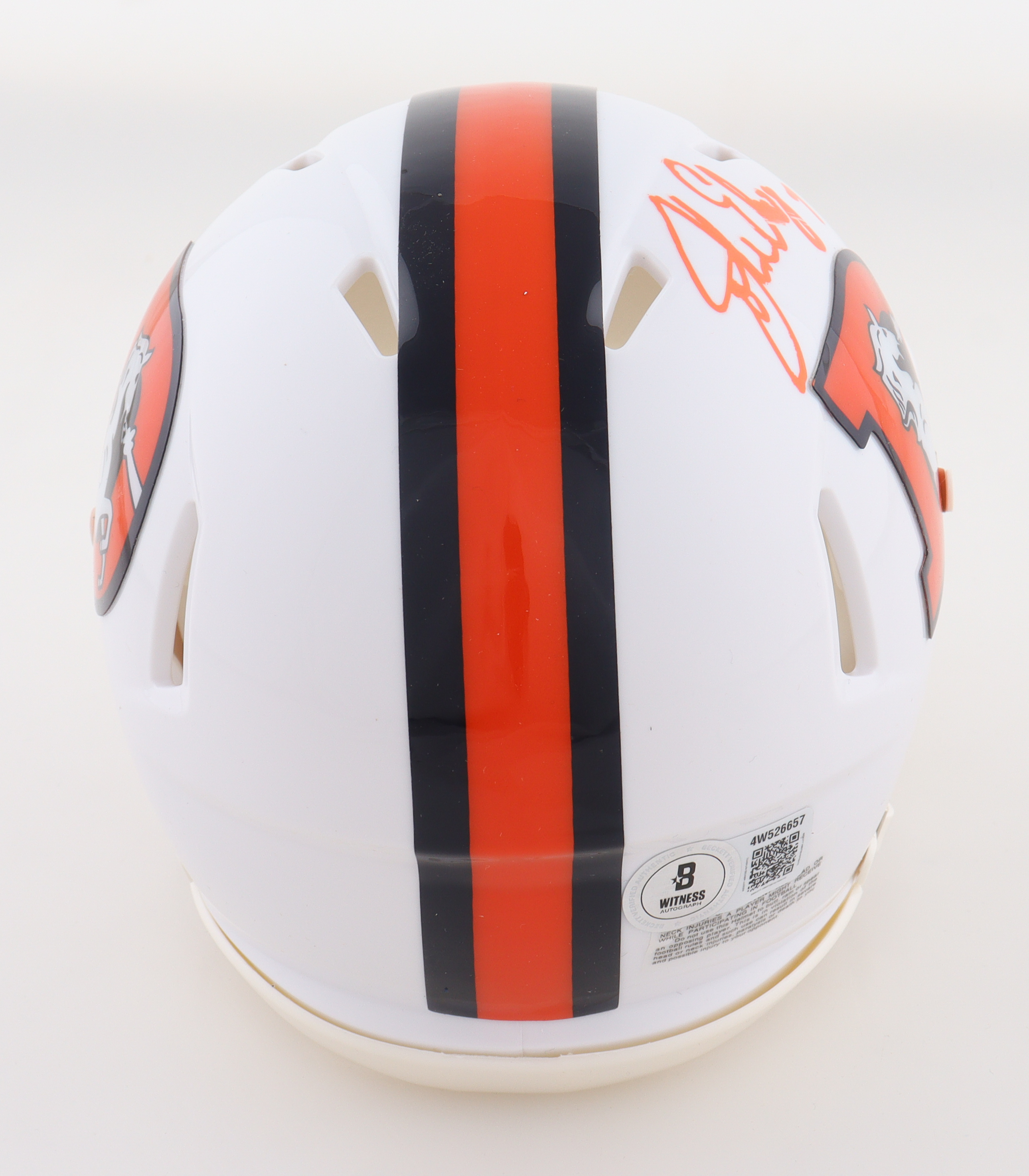 Riddell Denver Broncos Throwback Alternate Speed Mini Helmet. Hand-signed by John Elway (HOF).