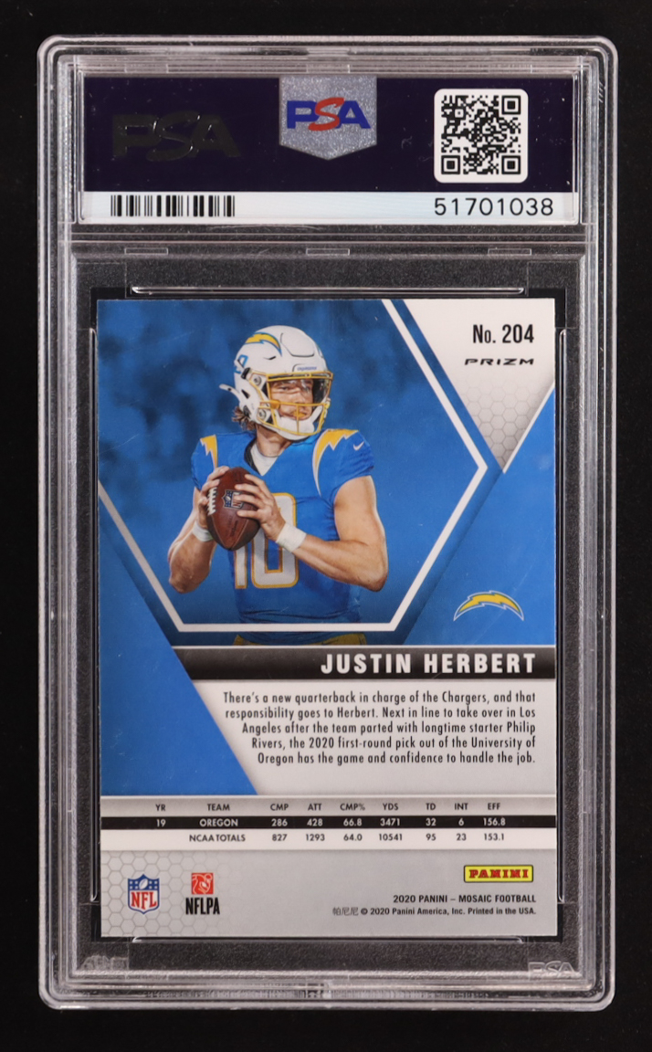 Justin Herbert 2020 Panini Mosaic Mosaic Reactive Green #204 RC (PSA 10)