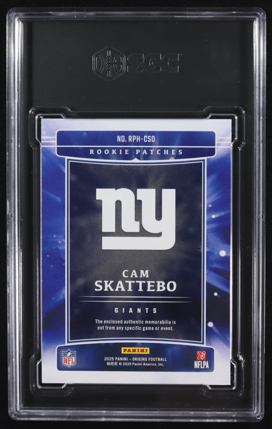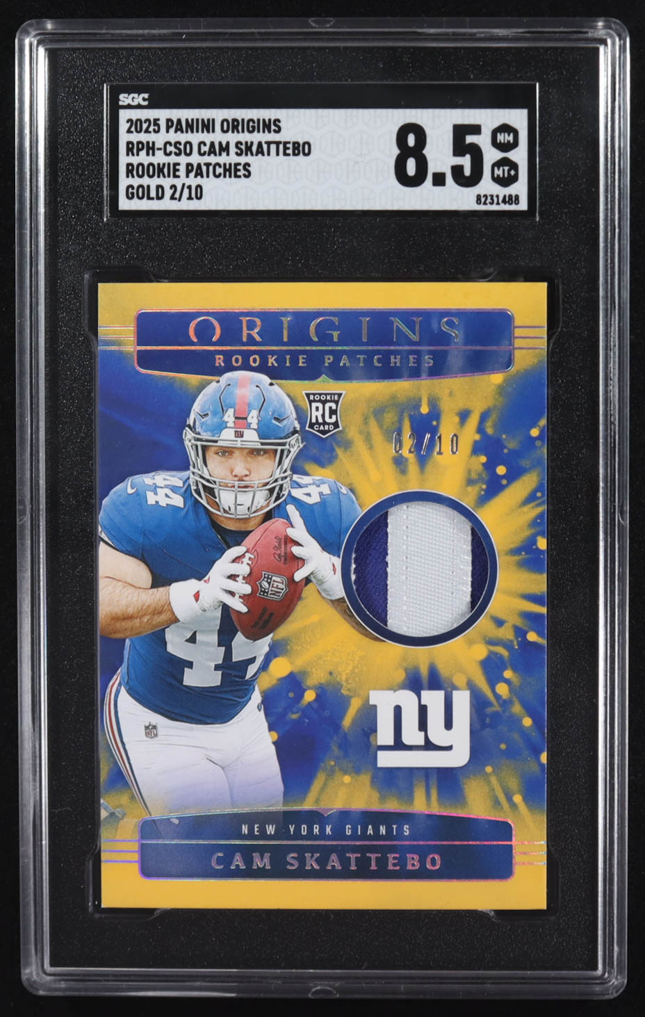 Cam Skattebo 2025 Panini Origins Rookie Patches Gold #RPJ-CSO RC #2/10 (SGC 8.5)