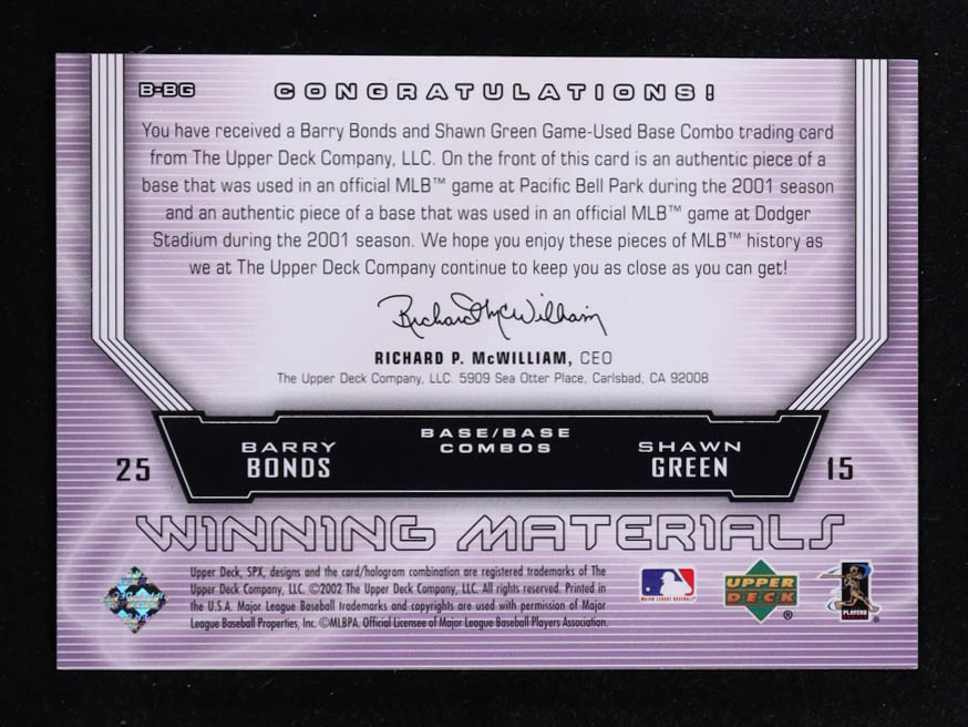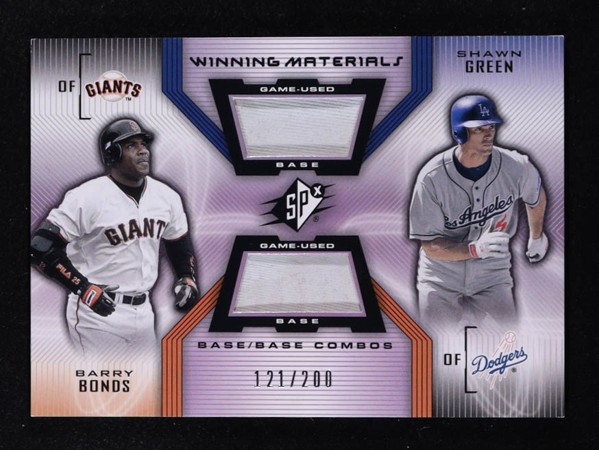 Barry Bonds / Shawn Green 2002 SPx Winning Materials 2-Player Base Combos #BBG #121/200