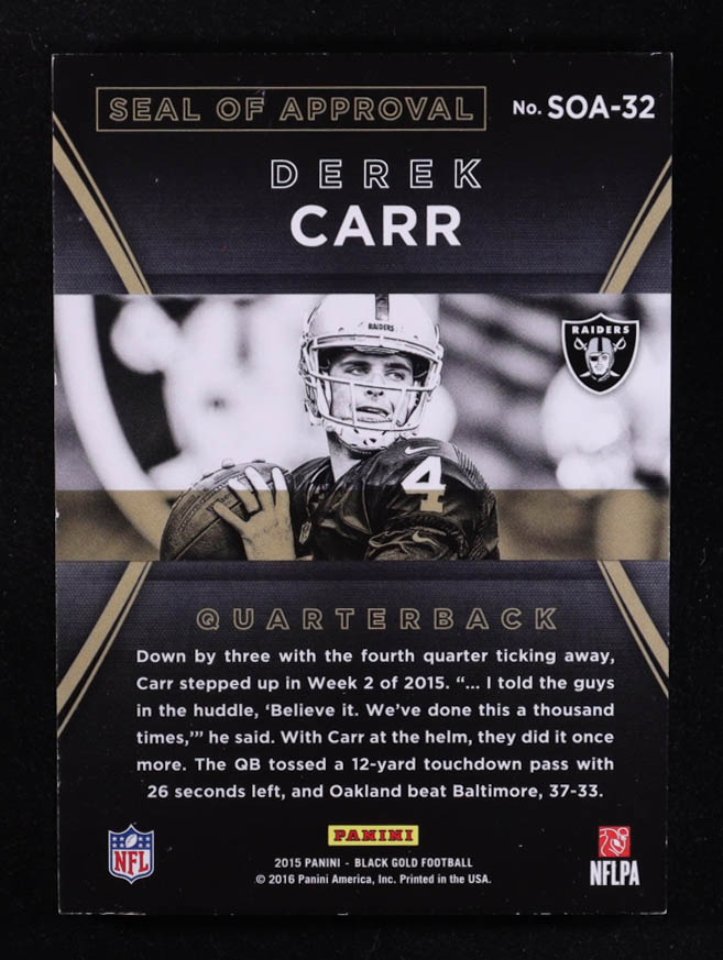 Derek Carr 2015 Panini Black Gold NFL Seal of Approval #SOA32 #7/149