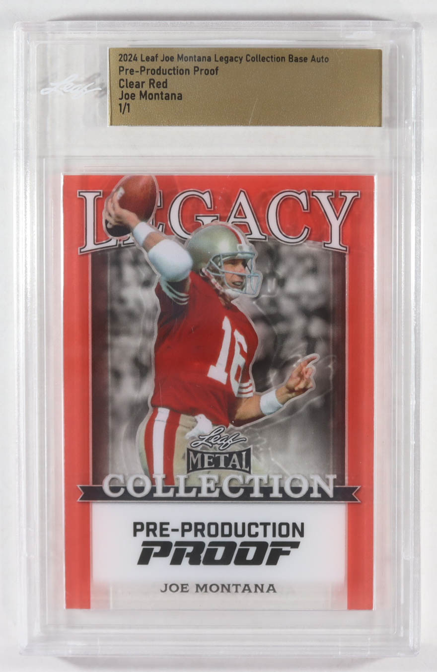 Joe Montana 2024 Leaf Joe Montana Legacy Base Auto Pre-Production Proof Clear Red #NNO #1/1 (Leaf)