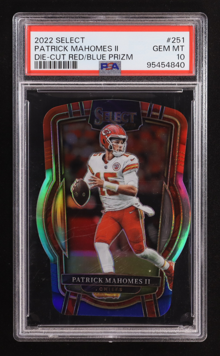 Patrick Mahomes II 2022 Select Prizm Red and Blue Die Cut #251 (PSA 10)