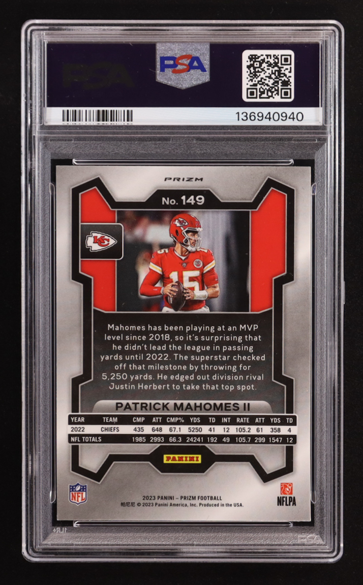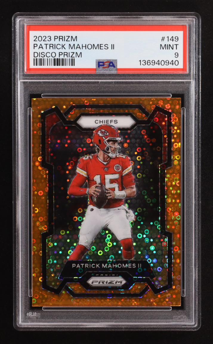 Patrick Mahomes II 2023 Panini Prizm Prizms Orange Disco #149 (PSA 9)