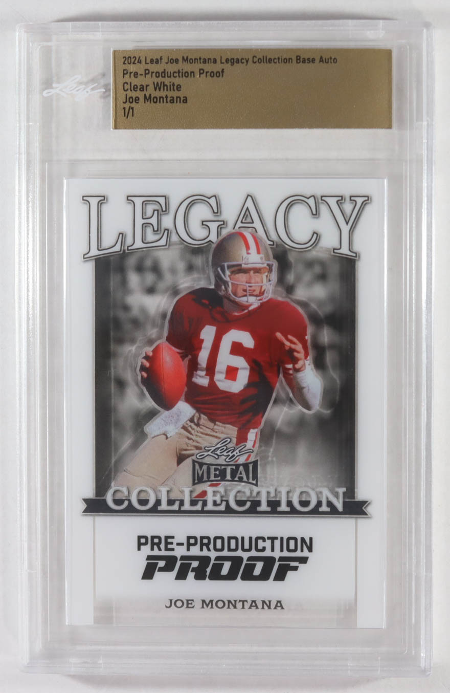 Joe Montana 2024 Leaf Joe Montana Legacy Base Auto Pre-Production Proof Clear White #NNO #1/1 (Leaf)